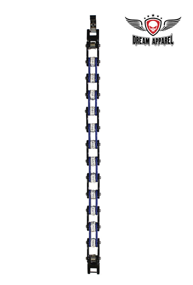 What a sight to see, this black and blue motorcycle bracelet features beautiful clear gemstones on a newly implemented squared surface. Each stone is carefully placed to a point of near perfection. The bracelet has a heavy duty clasp making sure the fit is comfy and adjustable. This glamourous bracelet is definitely one you'd love to show off so grab yours now!