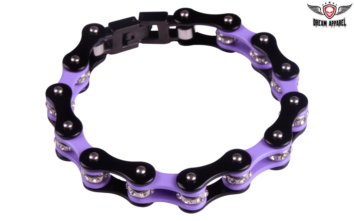 Black and Purple Motorcycle Chain Bracelet with Gemstones - L is backordered and will ship as soon as it is back in stock.