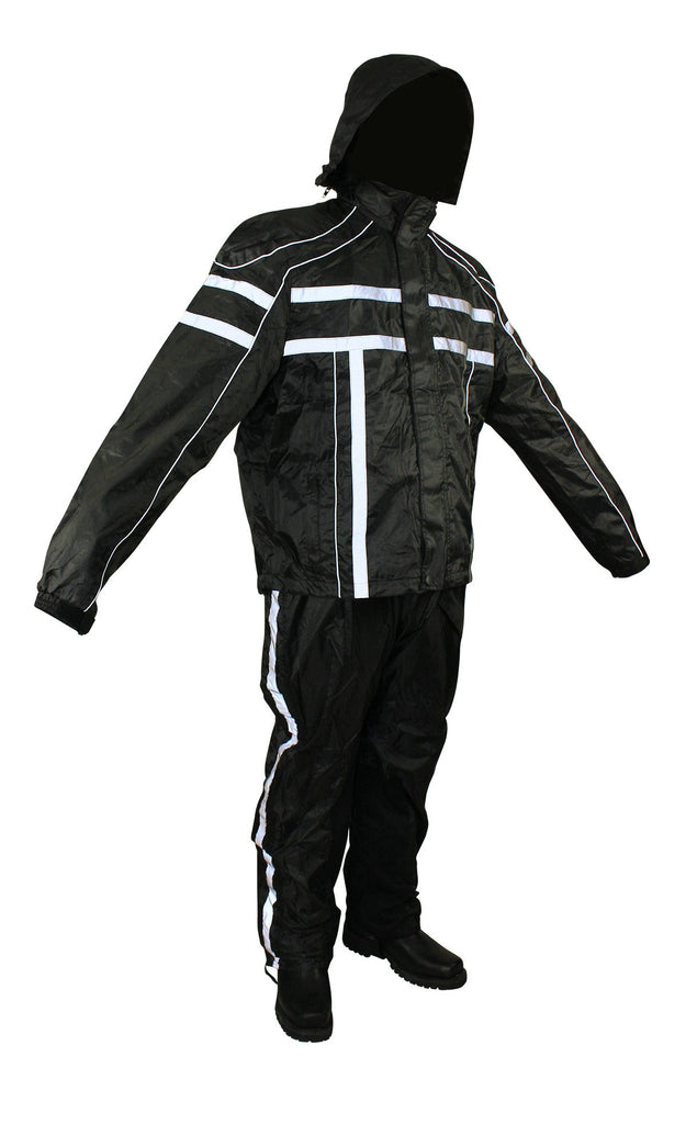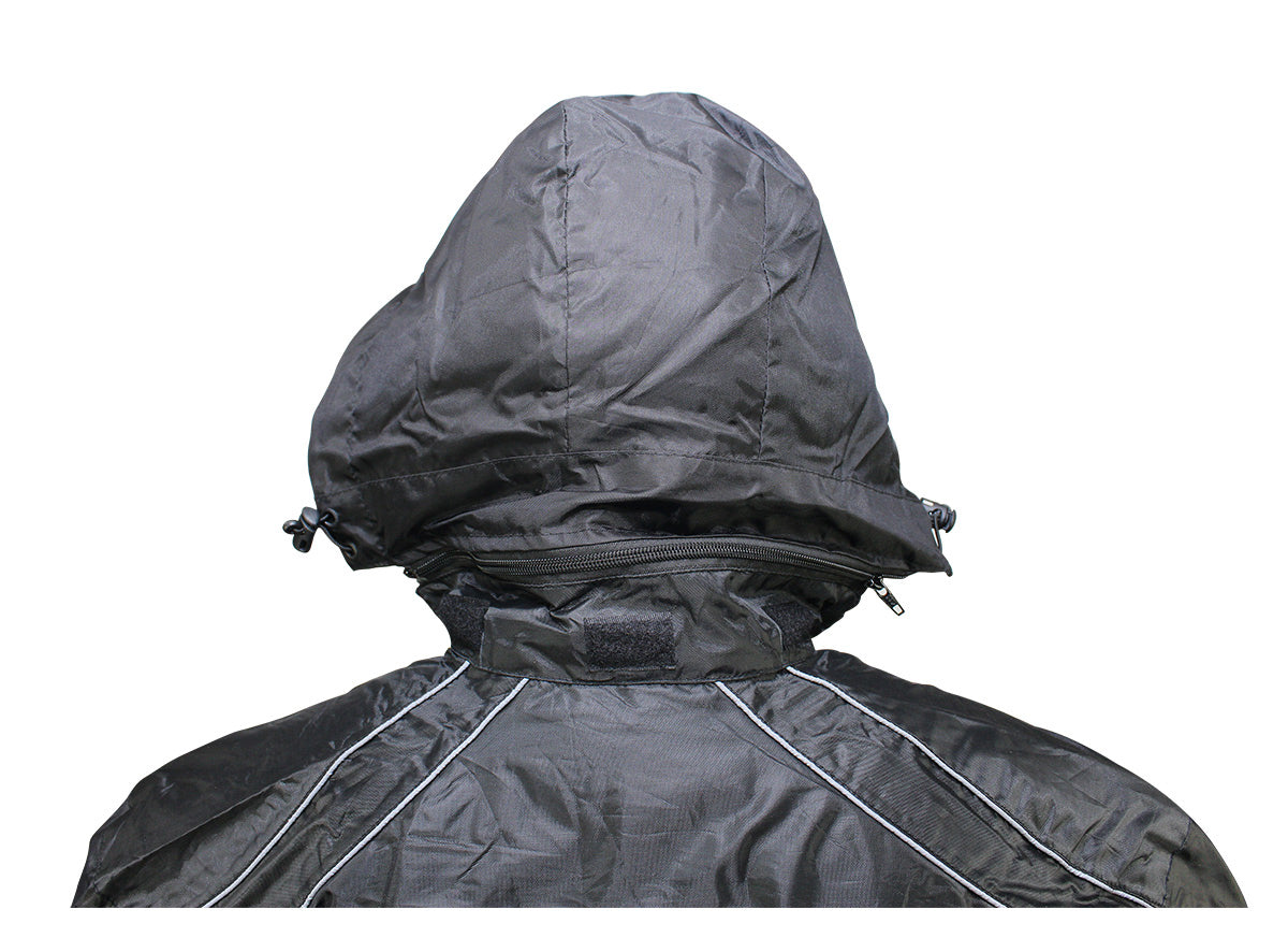 Rainy days are among us and it's always best to be prepared. Introducing our all new beautiful textile rain suit in a black and orange colorway. The set features both a jacket as well as pants to match. To start off, the jacket allows you to remove the hood. Once the front zipper is closed, a protective velcro layer is placed over it for additional closure. Two pockets are on the waist area, both of which are rainproof. The pants feature velcro starting right underneath the waist and goes all the way down to your ankles with a zipper placed under. This allows you to loosen your pants before taking them off completely. Do not miss your chance, go get yourself a pair of this amazing set and you will not be disappointed.