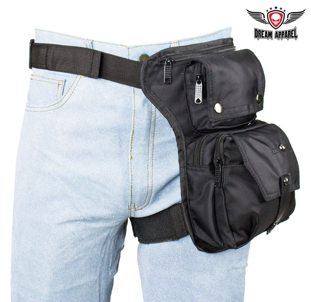 Black Textile Multi Pocket Thigh Bag with Gun Pocket