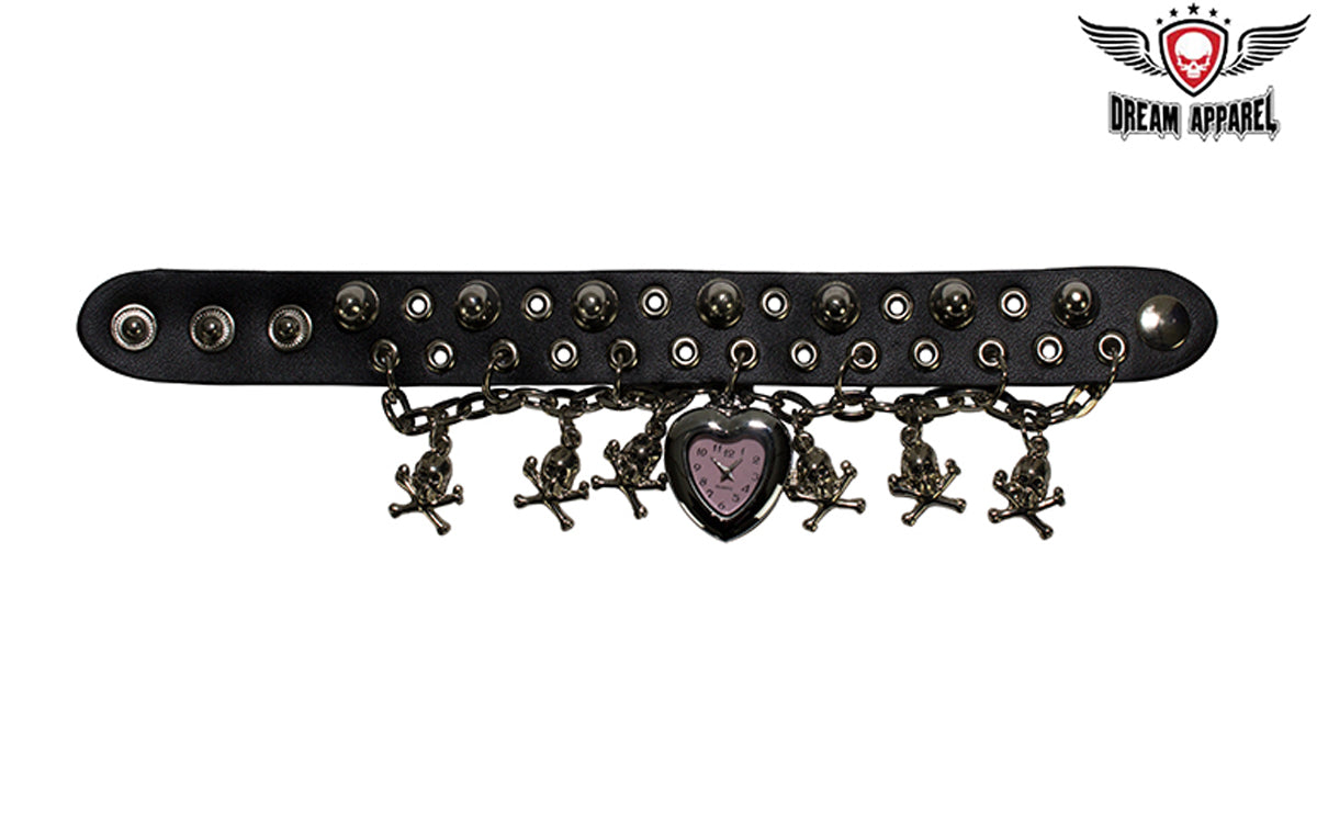 Black Wristband / Watchband With Hanging Skulls is backordered and will ship as soon as it is back in stock.