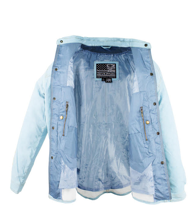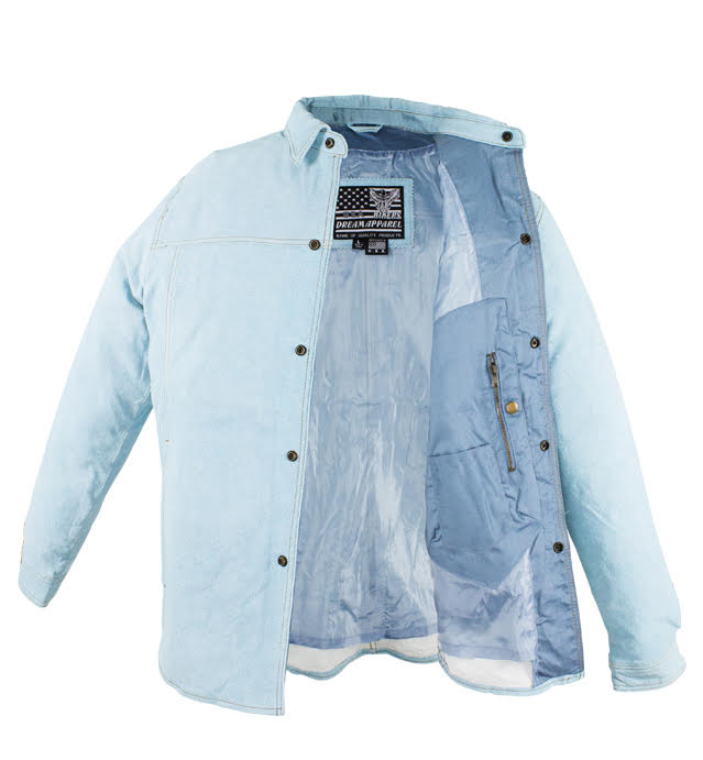 You notice it when you ride. People wearing denim, people wearing leather. Some people pick style and others pick comfort. At Dream Apparel, we have devised a new solution. The look and style of denim as well as the warmth, comfort and thickness of leather come together. Made from genuine leather, it might look like denim but it is the real deal. This beautiful full button down shirt with a denim look but made out soft genuine leather. The comfort and coziness of leather and the style of denim to clash and make a new treasure for your outfits.