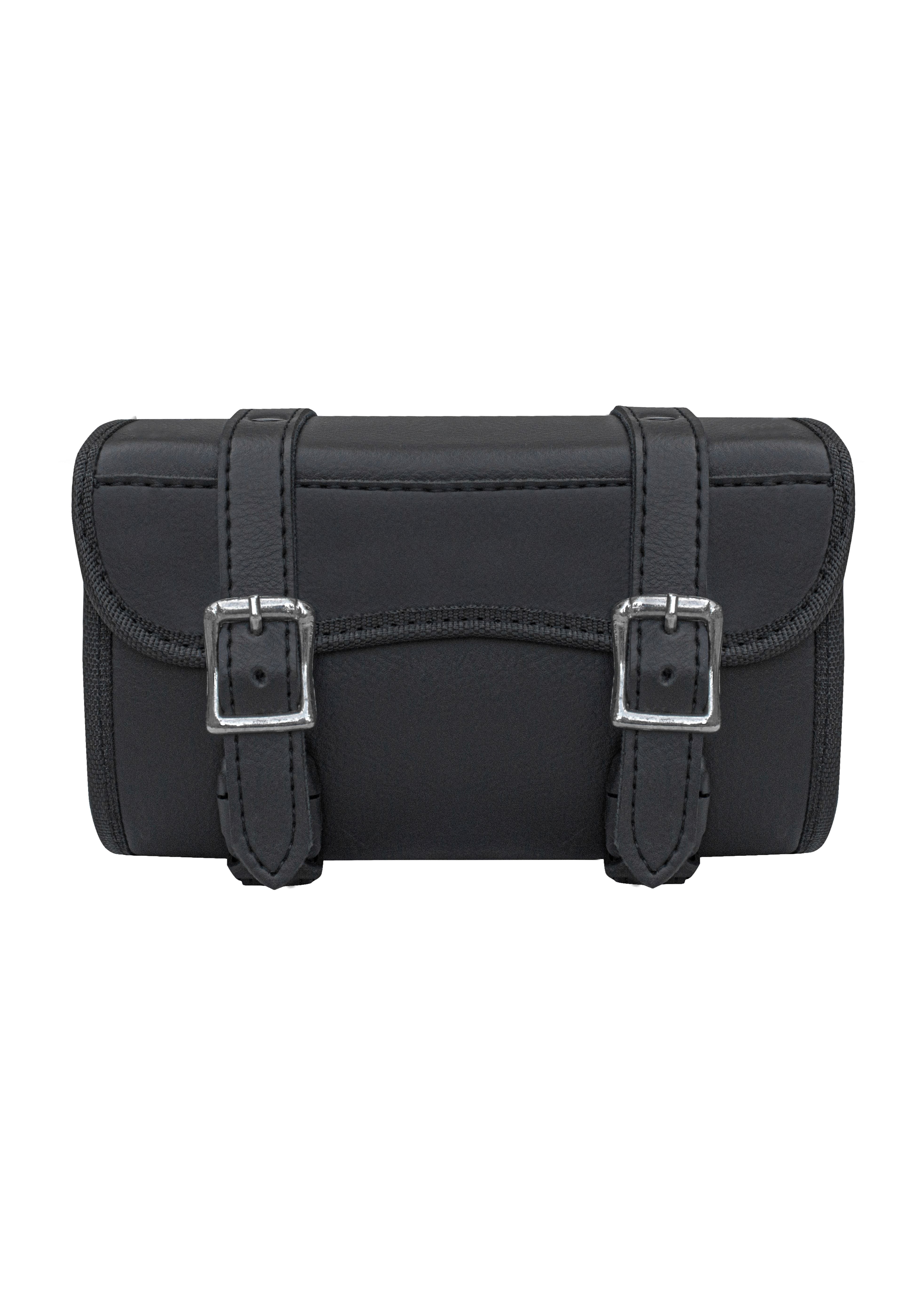 - Stylish and Functional: With its sleek black design and classic buckle straps, this tool bag seamlessly blends style and utility, complementing any motorcycle.