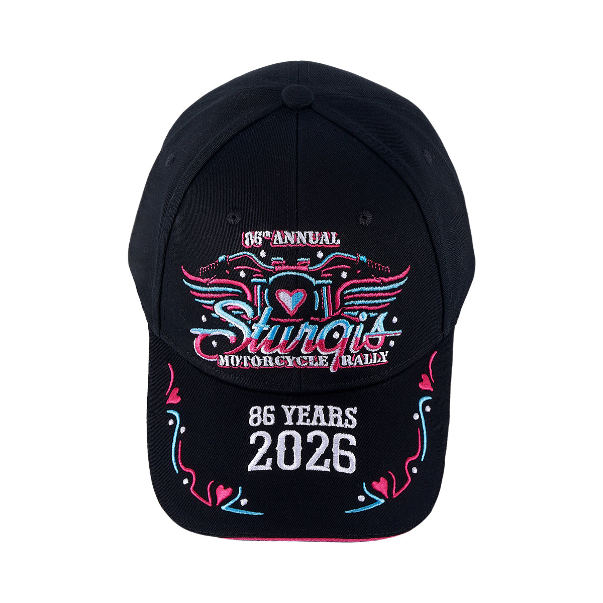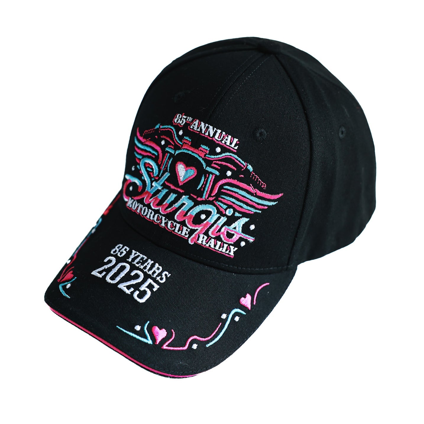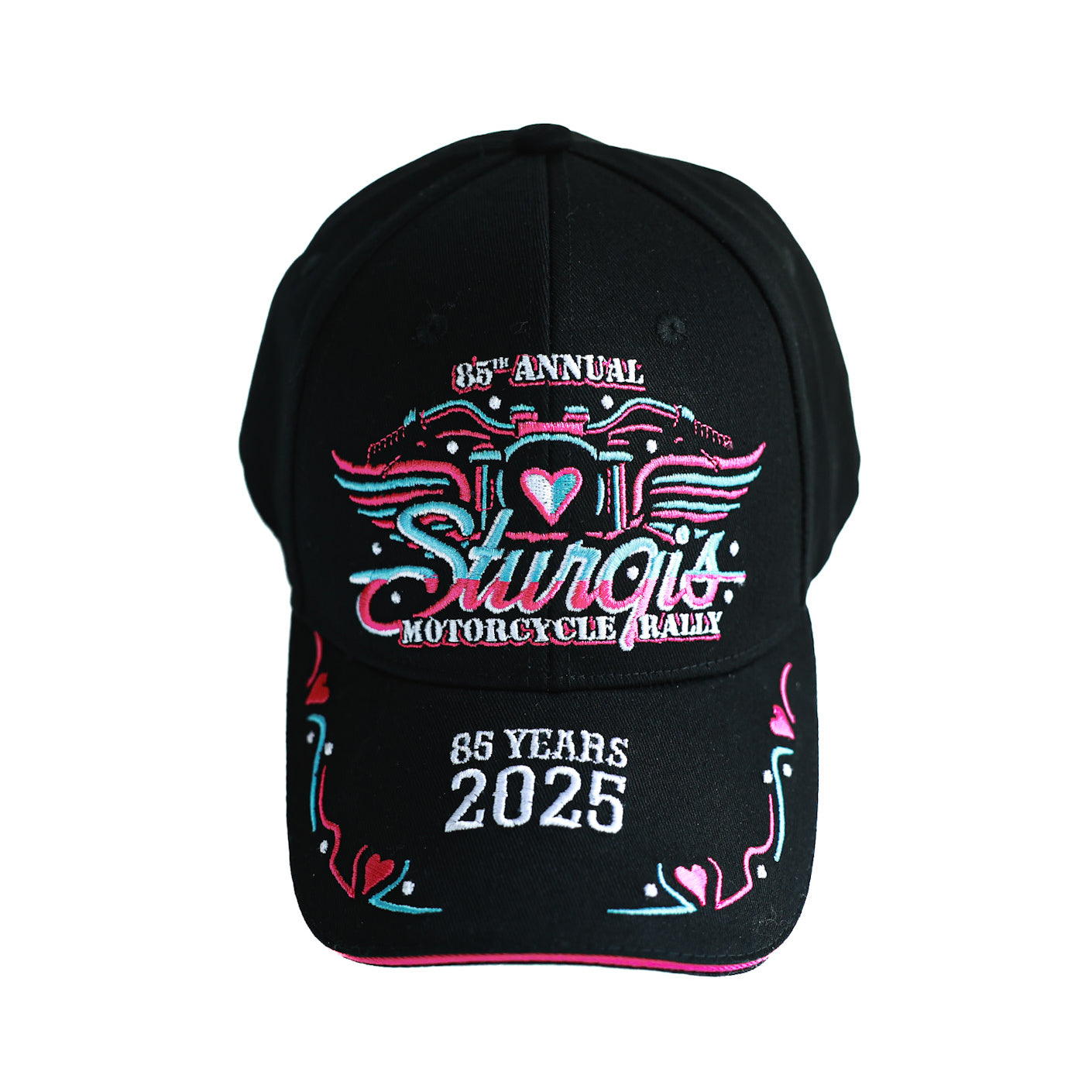 • Dream Apparel Sturgis 2025 Hat 85th Motorcycle Rally Cap Motorcycle With Wings Design Adjustable Biker Baseball Cap Blue & Pink Embroidered Souvenir Hat