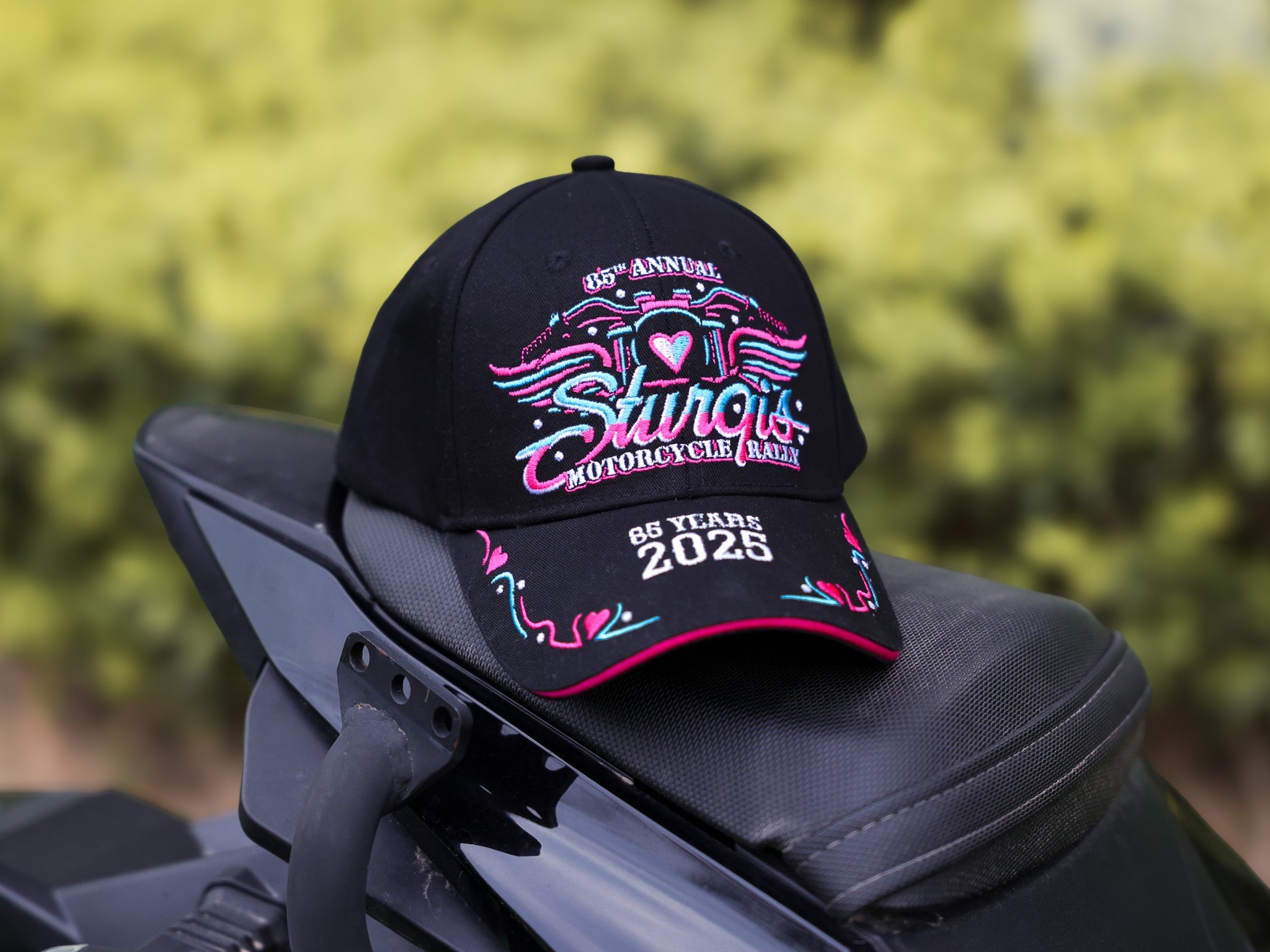 • 85th Sturgis Motorcycle Rally Hat – 2025 Edition: Celebrate the legendary 2025 Sturgis Rally in style with this themed cap featuring bold 85th Motorcycle Rally embroidery and classic motorcycle design. A collector's favorite and a must-have for every biker.