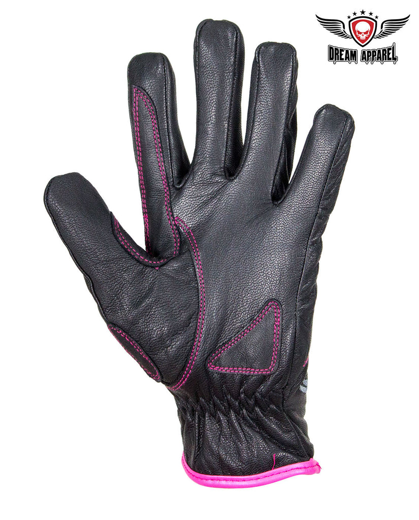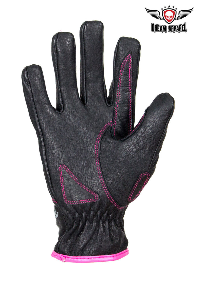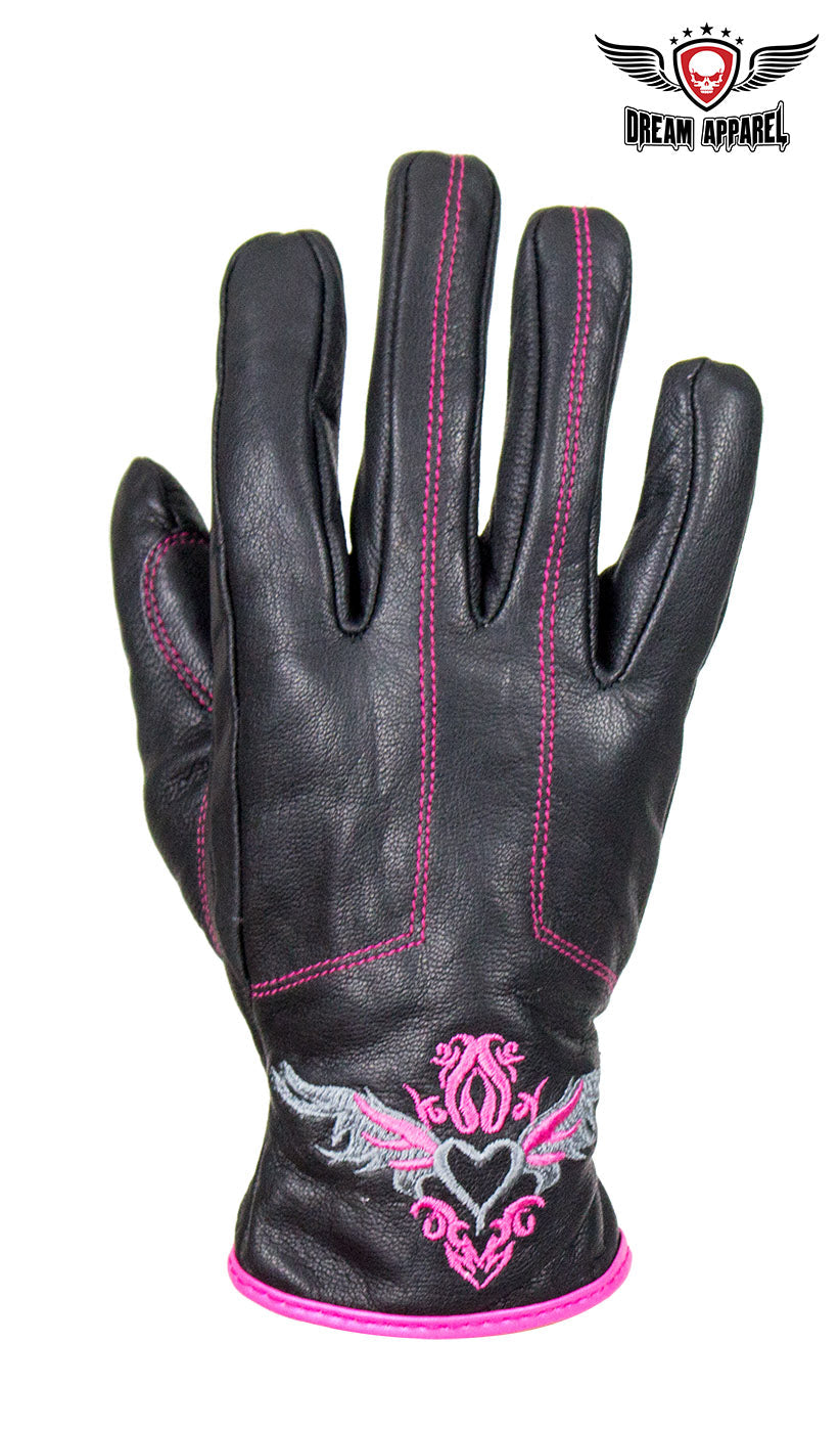Embroidered Pink Heart Graphic Naked Leather Gloves