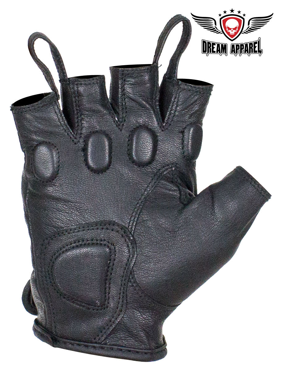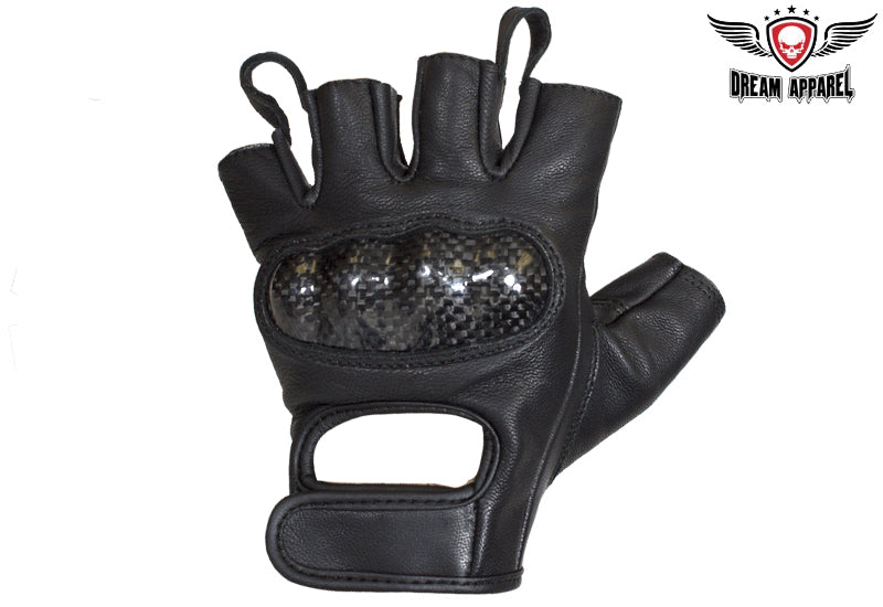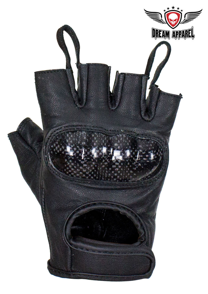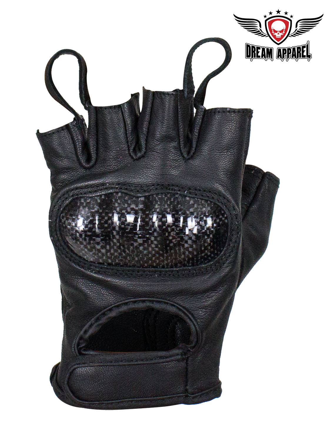 Our fingerless motorcycle gloves are the perfect mesh of a bikers style and comfort. Now made with even higher quality naked cowhide leather, you'll get the most eye-catching and pleasuable experience yet. Vibration is completely eliminated by the superb padding in the palms and balls of your hands. The clear, hardened carbon fibre knuckle protector allows maximum safety. The strong velcro strap both assures you that perfect fit you've long been search for while allowing your hands to be able to keep a firm grip on the clutch and trottle without hurting them.