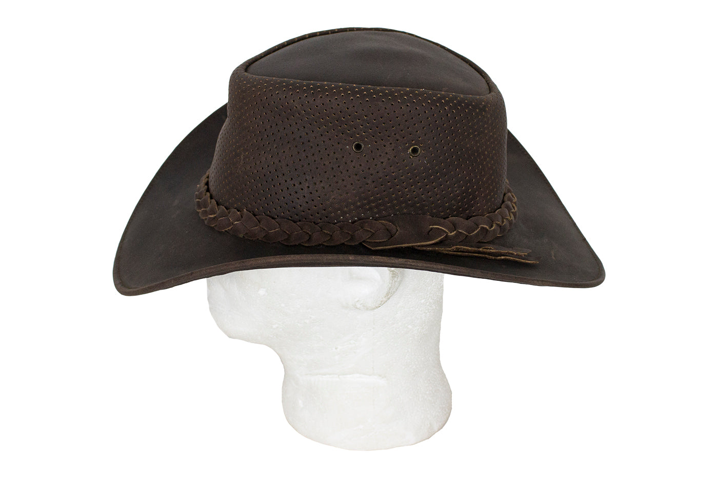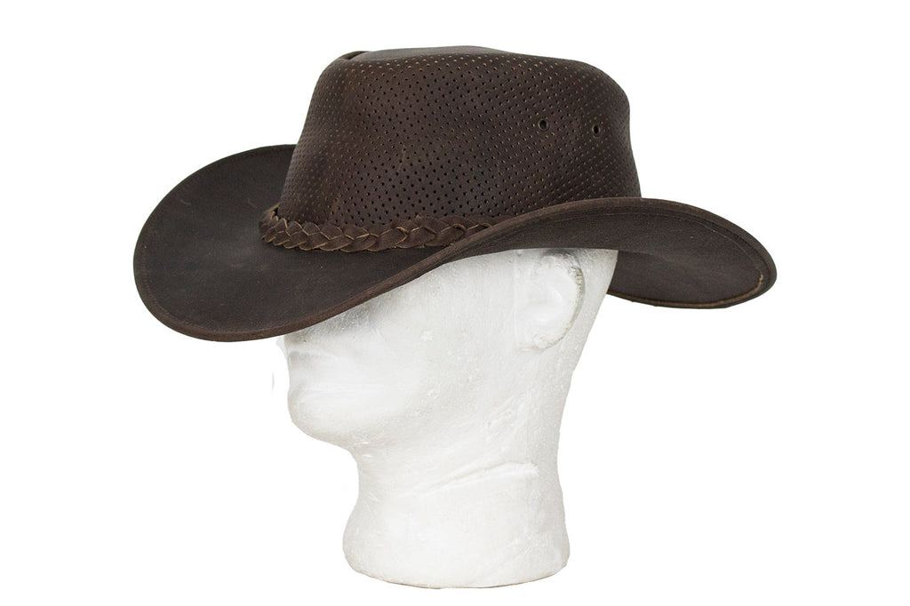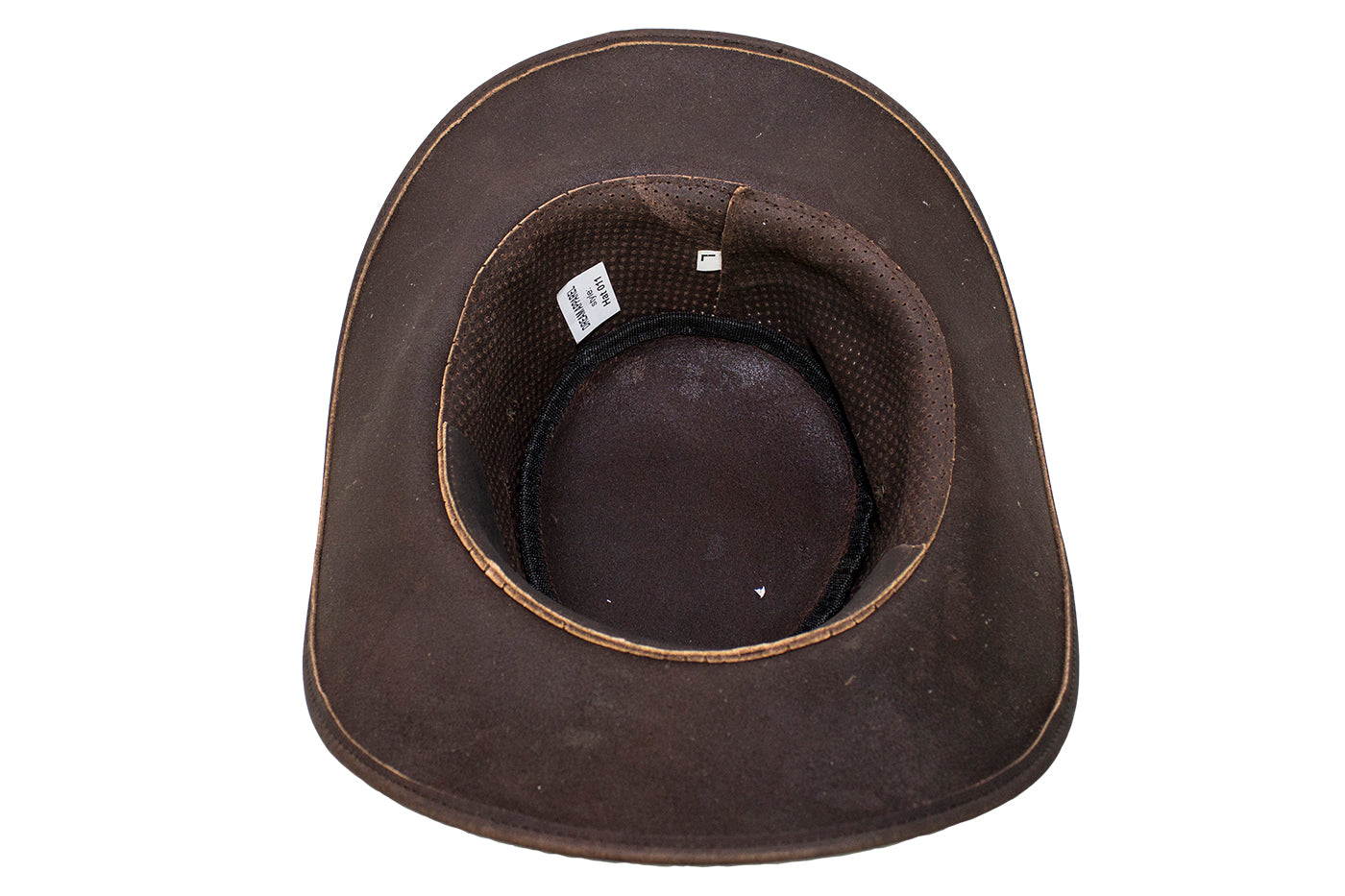 Whether you're a fan of Zarro or just looking to make a fashion statement, this beautiful genuine brown naked cowhide leather gambler hat is a definite must have in any bikers arsonal. Around the crown, there is decorative stamped leather. The brown woven leather hatband really stands out. Both comfort and style were of the utmost importance when designing this hat. The brass rivets are on the sides of it. Without a doubt, this hat will catch a ton of attention, making you really stand out amongst your peers. Grabs yours now!
