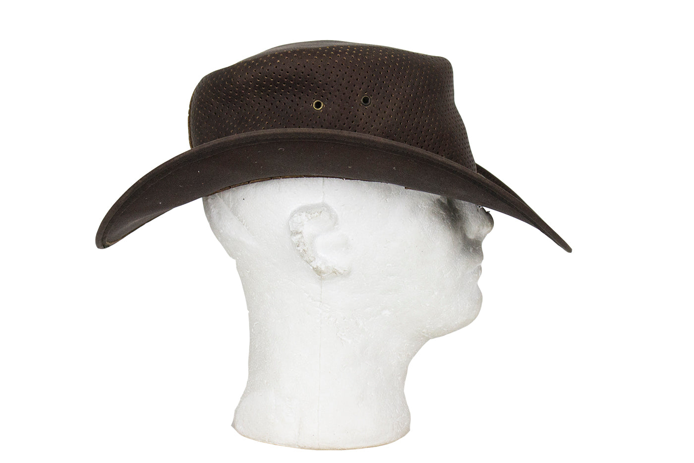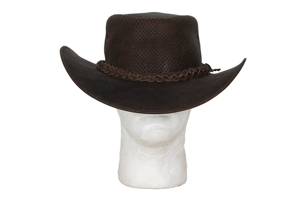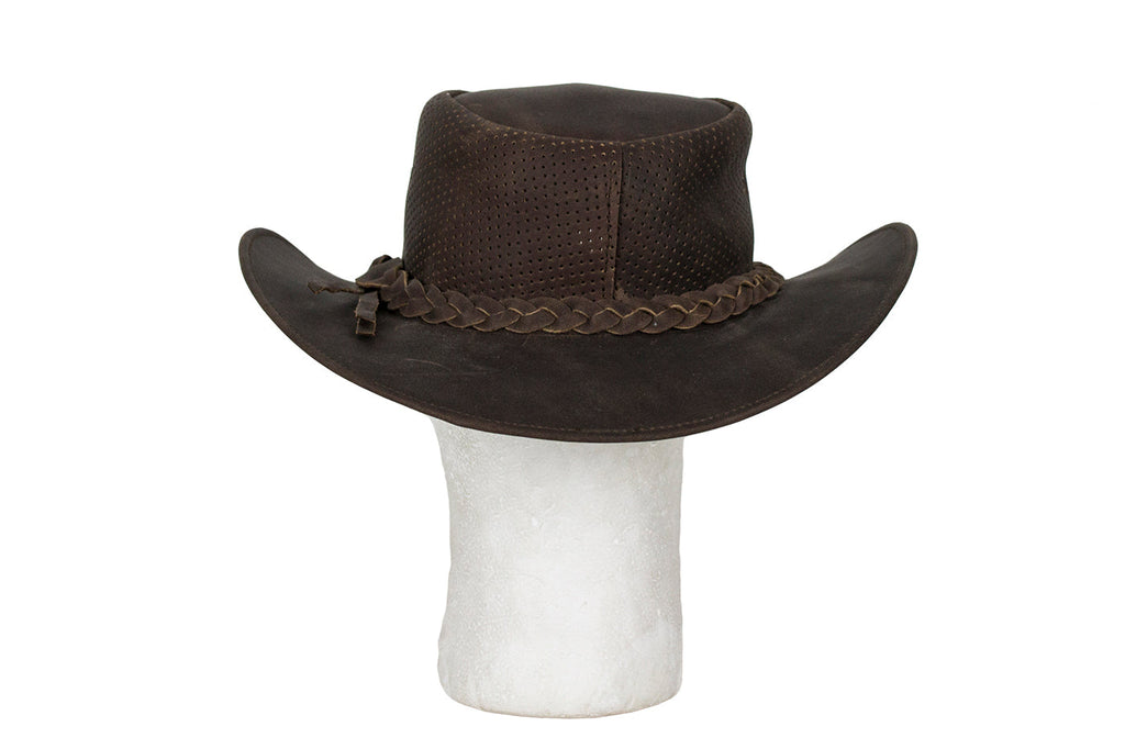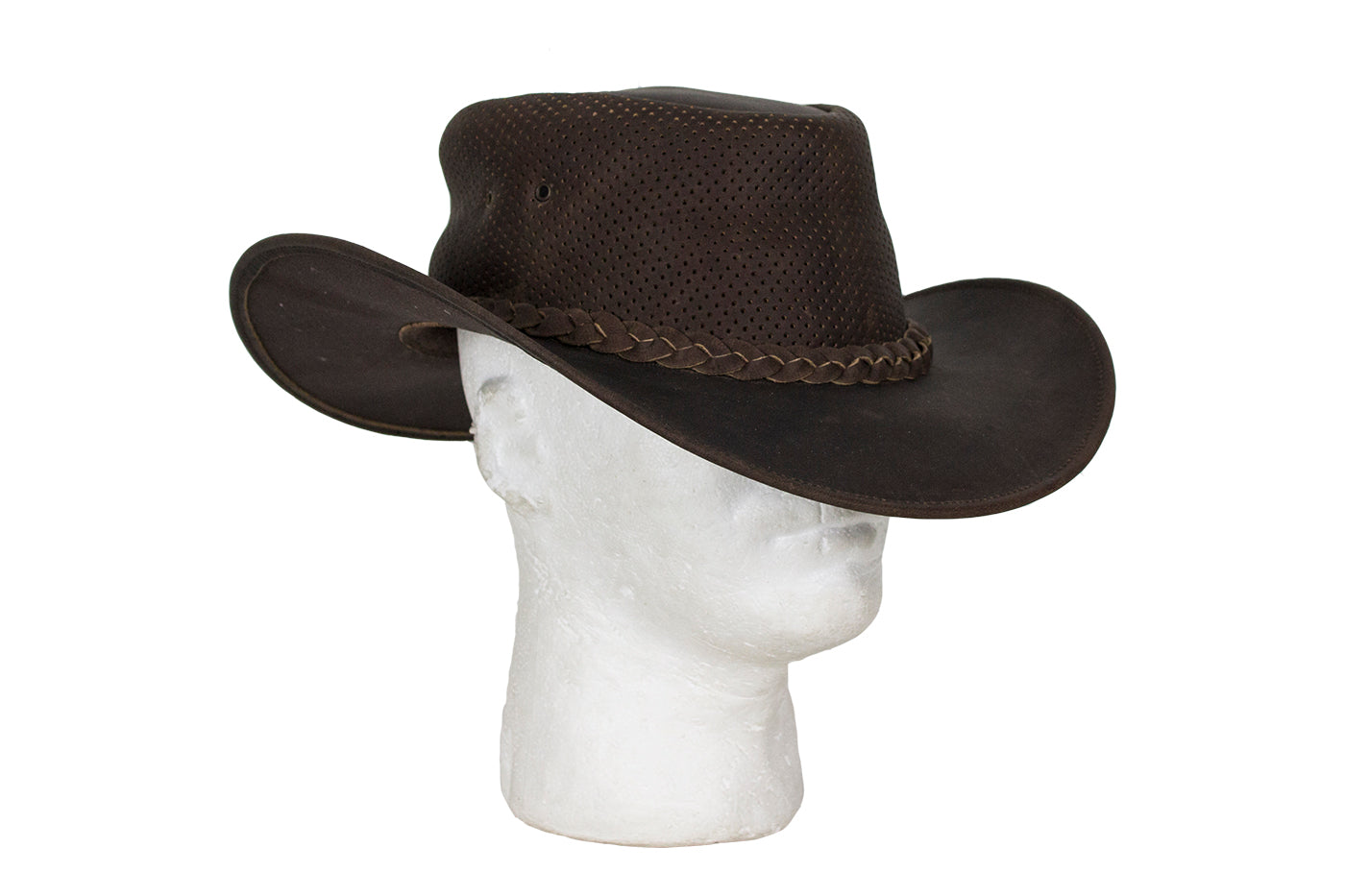 Whether you're a fan of Zarro or just looking to make a fashion statement, this beautiful genuine brown naked cowhide leather gambler hat is a definite must have in any bikers arsonal. Around the crown, there is decorative stamped leather. The brown woven leather hatband really stands out. Both comfort and style were of the utmost importance when designing this hat. The brass rivets are on the sides of it. Without a doubt, this hat will catch a ton of attention, making you really stand out amongst your peers. Grabs yours now!