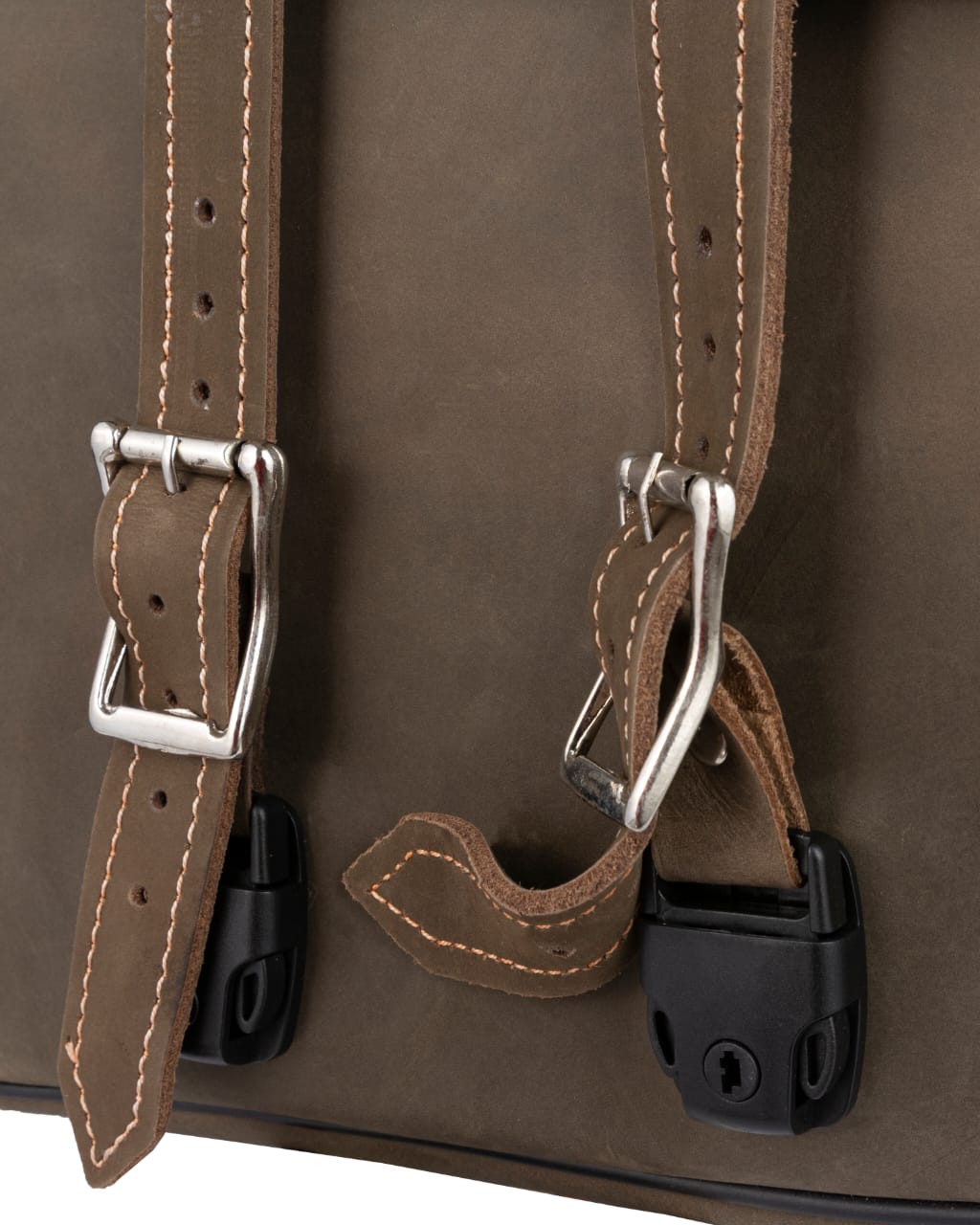 If you're looking to increase your cruising distance, then a bigger bike isn't the only thing you'll need. This 17.5"W x 6"D x 12"H vintage brown color, waterproof, naked cowhide leather is sewn around a hard shell and features elastic and adjustable strapping in each bag to secure your handguns, is water proof, guaranteed to hold its shape, and fits most motorcycles, Inside each bag is a nylon side pocket with an elastic band for smaller items. Everything is safe and secure by protective flaps over the openings with button snaps. The whole bag closes with an outer flap with heavy-duty quick release clips styled to look like vintage chrome roller buckles. Thin black braiding along the edges and chrome studs run along the braiding to provide a fantastic look. The bags tie together with flaps that go over the fender and tie together by nylon laces. For added support, they zip to the flaps by adjustable covered zippers and come with four tie down laces. Each bag comes with a strong carrying handle, is heat protected & road hazards protection. Order yours today as these incredible saddlebags offer an amazing value and are priced to move.