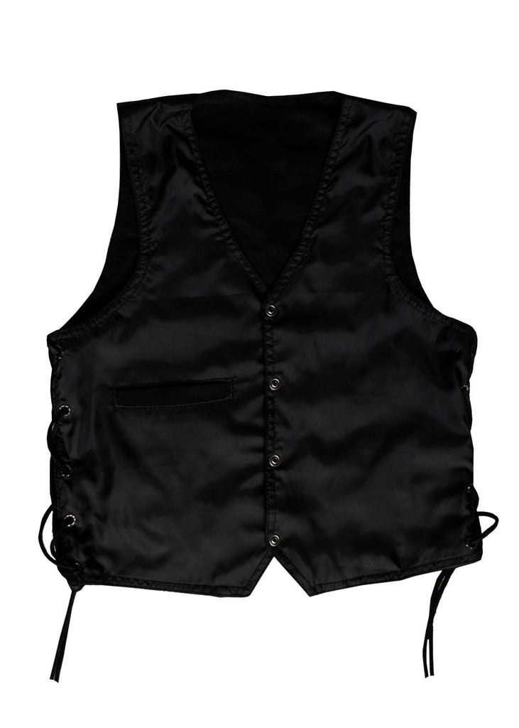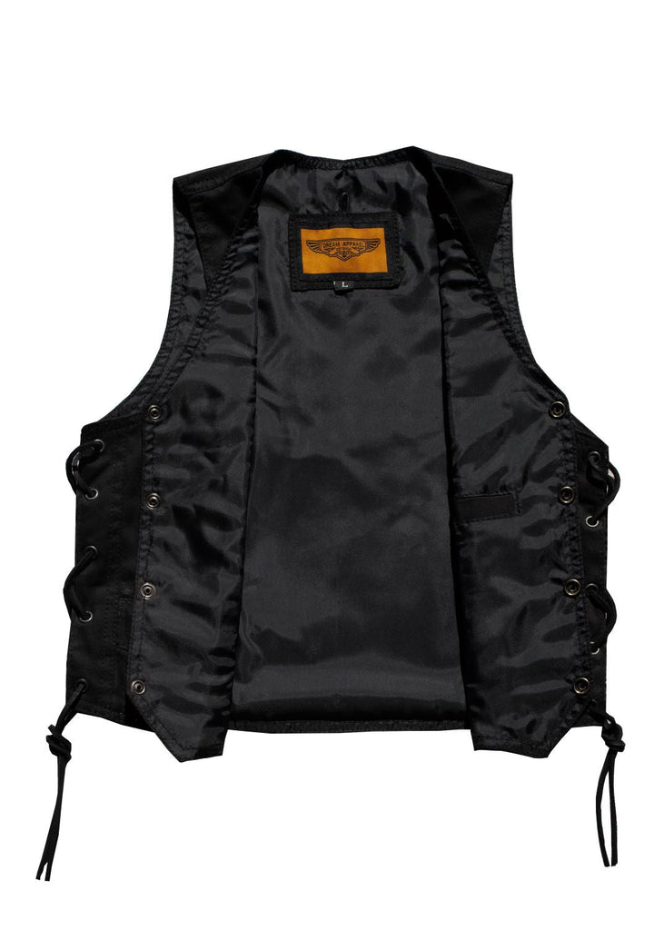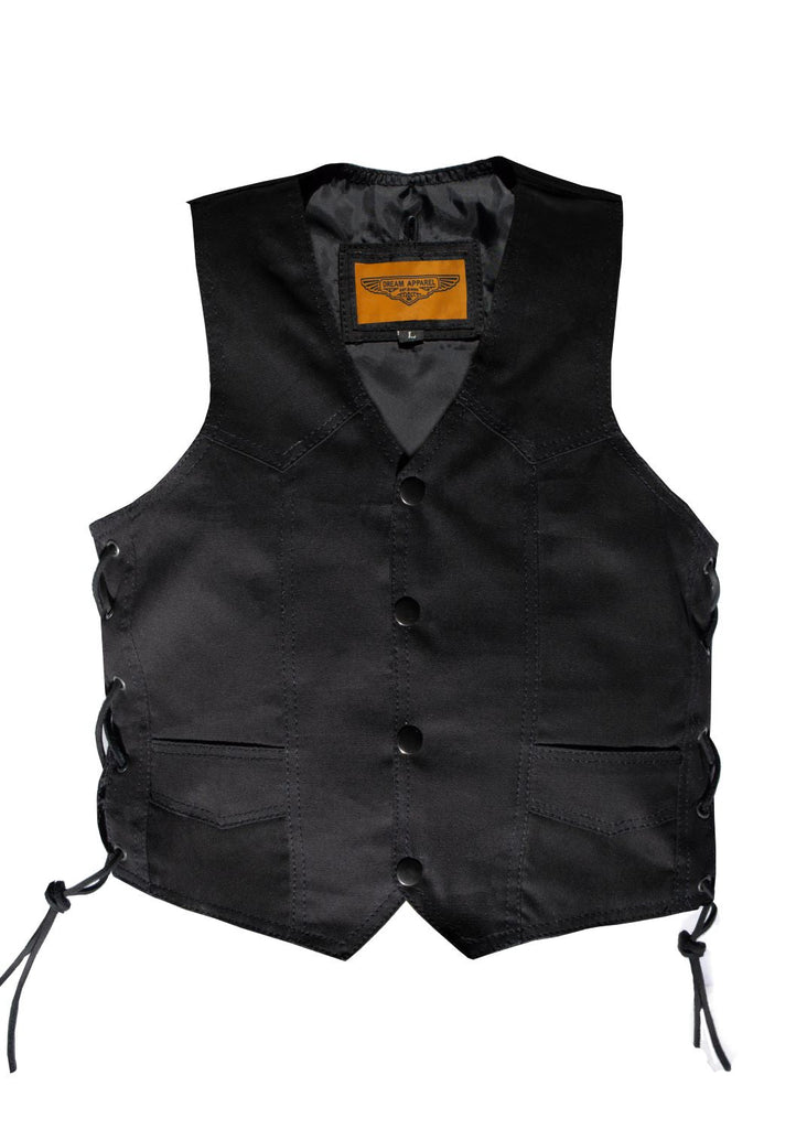 You're never to young to be stylish, at least not here at Dream Apparel. Now our vest is back, with a different feel to it. With the new black demin material, we've put this beauty together. Snaps on the front allows it to put on and taken off with a click, it's that easy! Multiple large pockets make it possible to store any essensials while still leaving a cool vibe that goes great with the implementation of our side laces. This vest will allow the kids to really stand out and make a fashion statement.