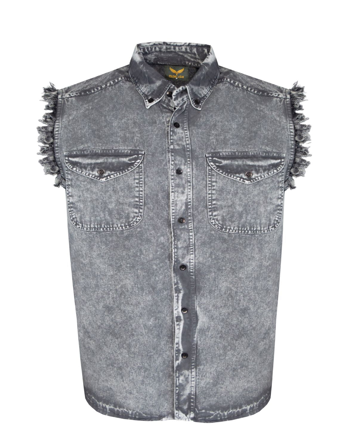 Mens Biker Cuttoff Cotton Shirt Stonewash Grey - M is backordered and will ship as soon as it is back in stock.