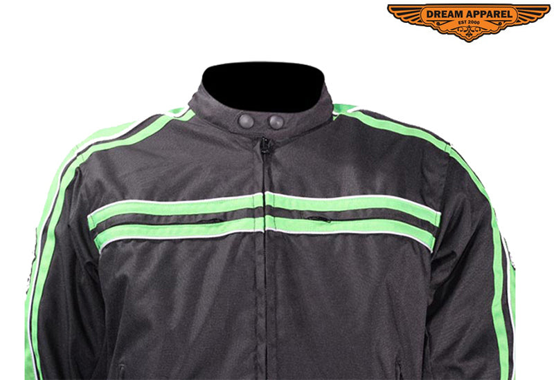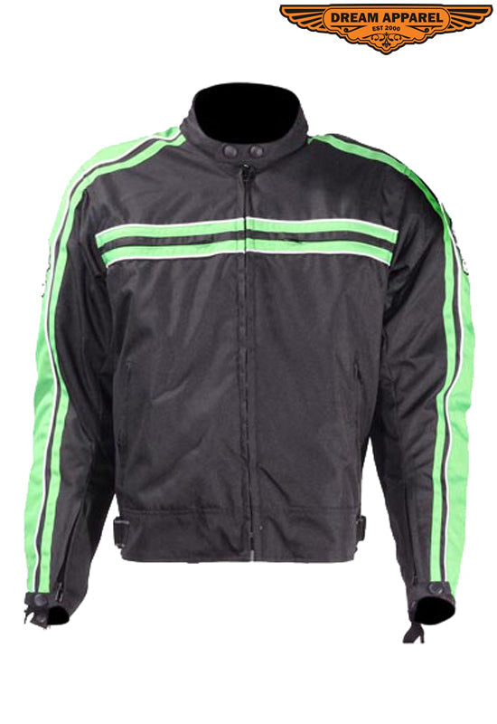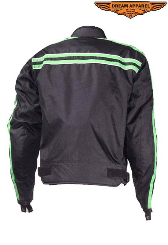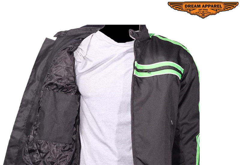 Men's Black Lightweight Textile Jacket W/ Green Striped Design