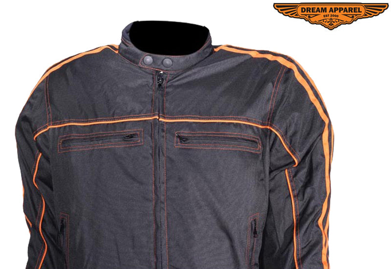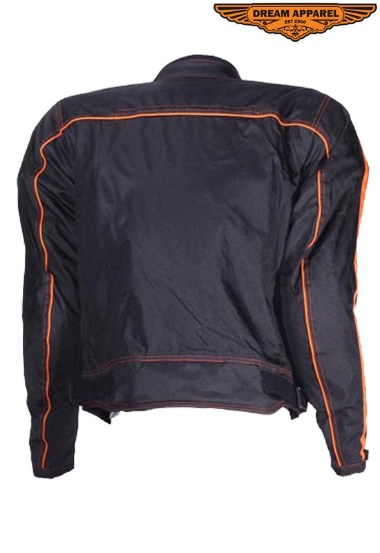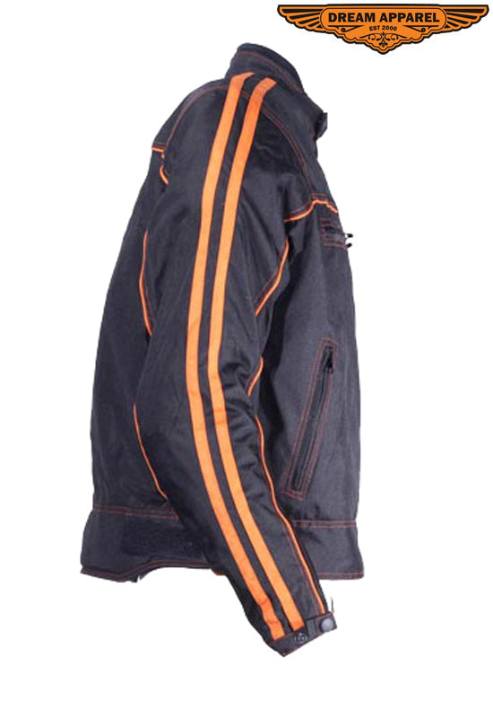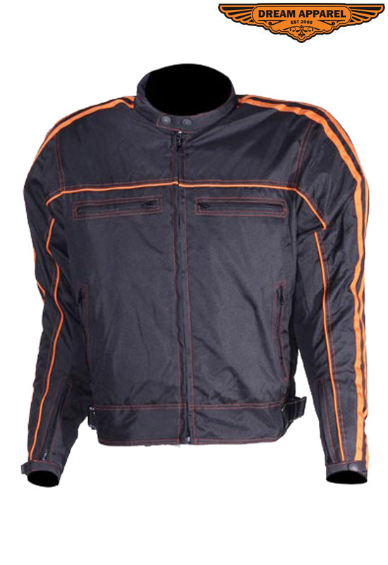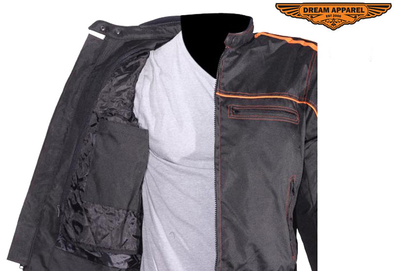 Men's Black Lightweight Textile Jacket W/ Orange Stripes