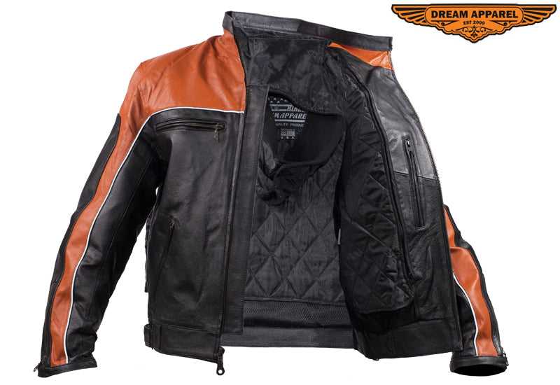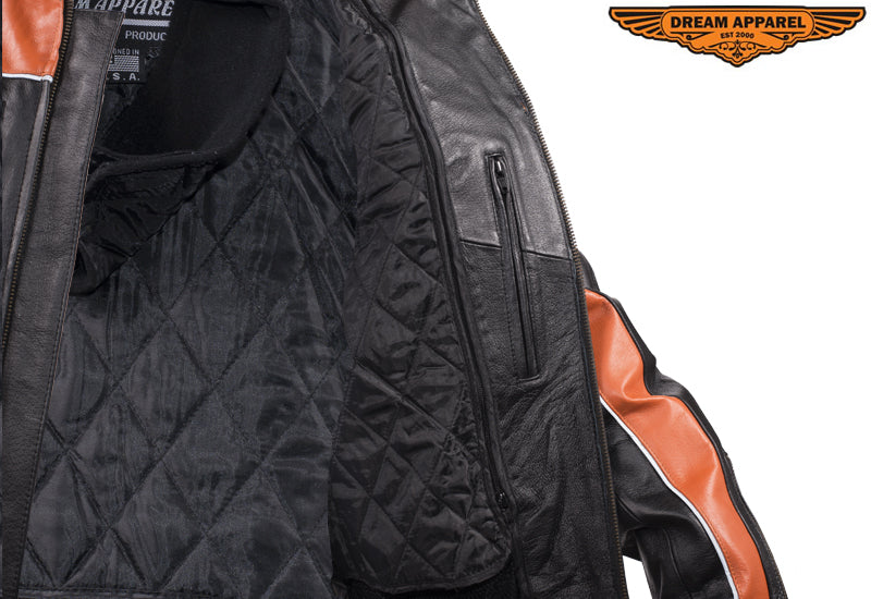 Inspired by the incredible superbikes from the MotoGP, Dream Apparel's racing jackets are made with the rider's needs first like the highest grade, naked cowhide leather and safety reflective piping to make you seen at night. Keep the wind off by zipping the front closure all the way up to the racing style collar, zip up the sleeves, adjust the velcro straps on your waist, and your gone. The soft, quilted nylon lining runs the full length of the sleeves and zips right out for seasonal use. Keep your cool with two zippered front vents and another that zips across the upper back. Two zippered waist pockets and another zippered pocket inside leave you plenty of room for a wallet, keys,