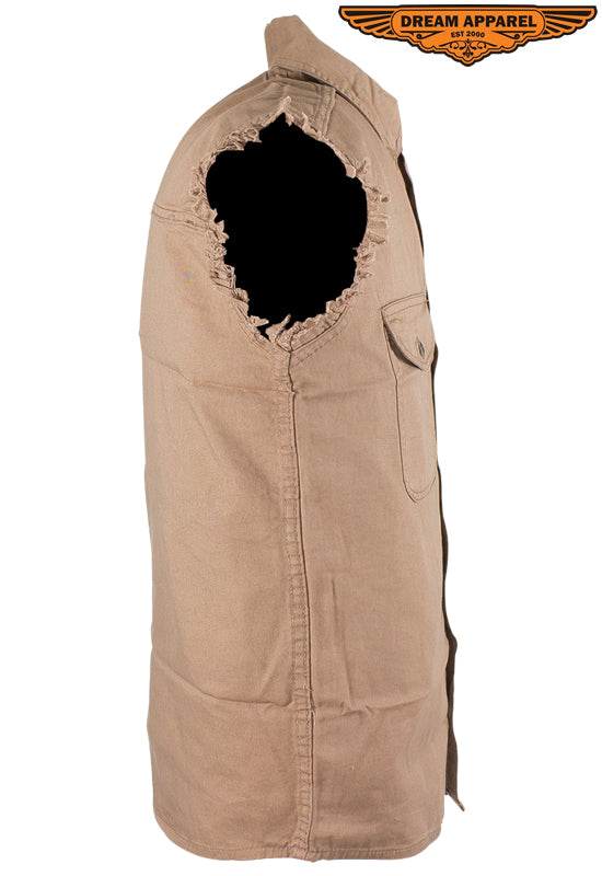 Wearing Ivory colored denim shirts turn you into the beast of the road. Nothing is better than being the relaxed outlaw you are while you ride through the hot summer days. The best part of not having sleeves is the breeze that cools you down even in the hottest of days. Made of excellent material and purposed to fit great, this creature will become a part of your casual life. Being comfortable is an enmity for daily life, so make it count. Whether you are at the bar, at a gig or on the road, you are going to feel at peace. Coming from a wide variety of colors, you will be able to customize your style with any color scheme. Designed for people who appreciate sleeveless shirts, this brings a whole new line of people into a style that handles their rides with comfort.