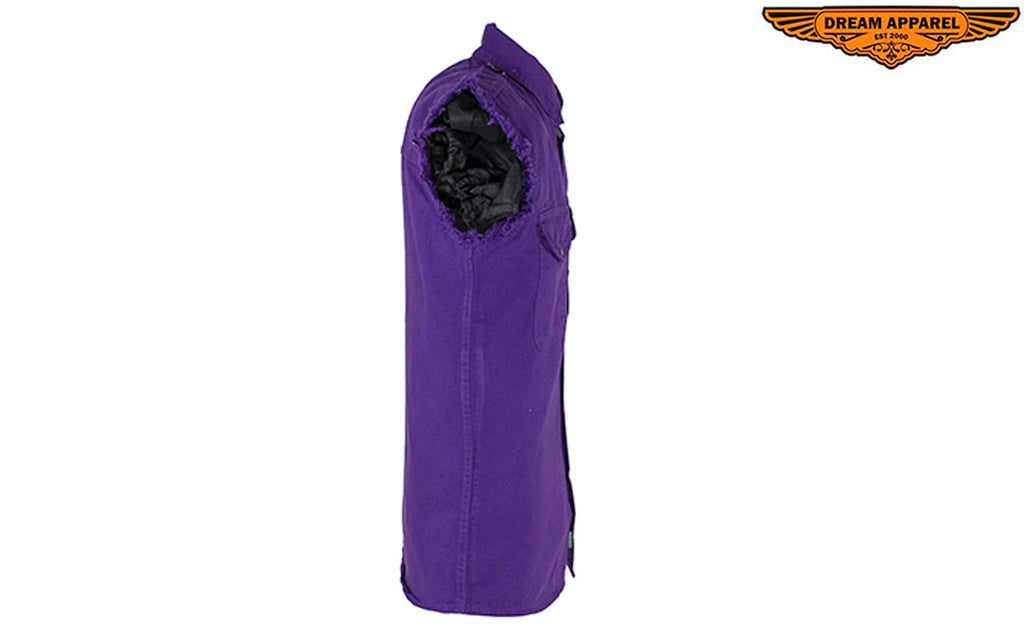 The color that emanates a mysterious feeling. Purple, a color that if it would smell, it would give off a smell like a burning log floating on top of a lake. Imagine giving off this feeling just from your shirt. That is what we have here today. Top quality material crafted to fit great and keep you cool on hot day drives. Denim shirts give a tougher look to people and this is no exception. If purple isn't your color, we have a large selection of different colors for people who want to customize their style.
