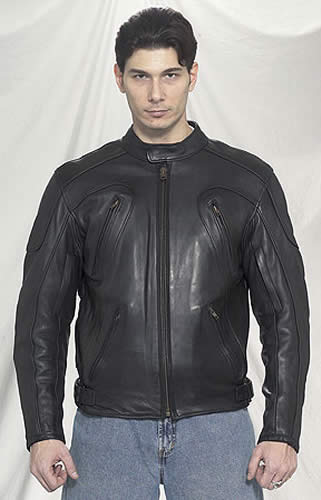 Men's jacket made from cowhide leather features a Z/o lining that runs through the sleeves, neck warmer, air vents, protective padding on the sleeves, front and back, adjustable straps and zippered cuffs for a great fit!