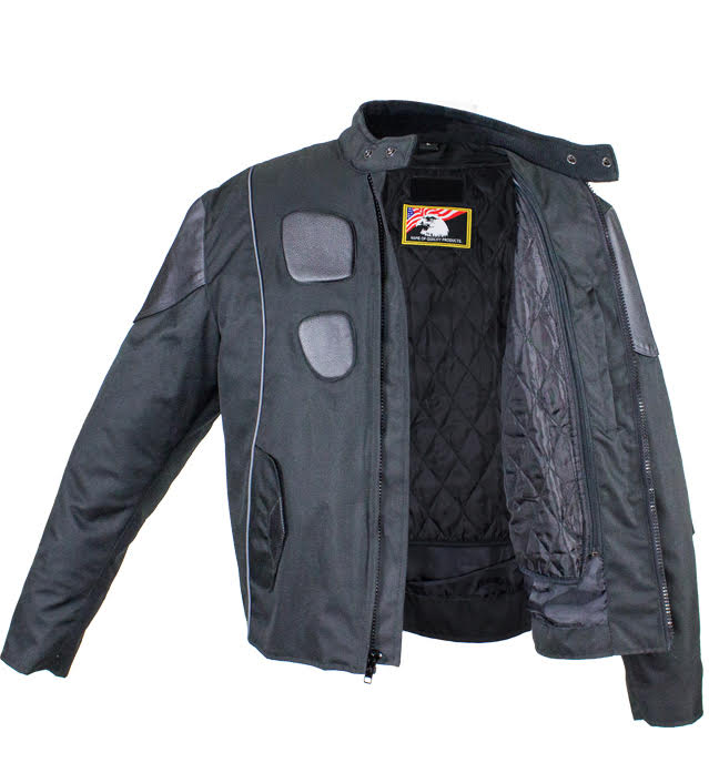 - Textile Jacket with Leather Padding on Elbow, Shoulders, Chest and Back