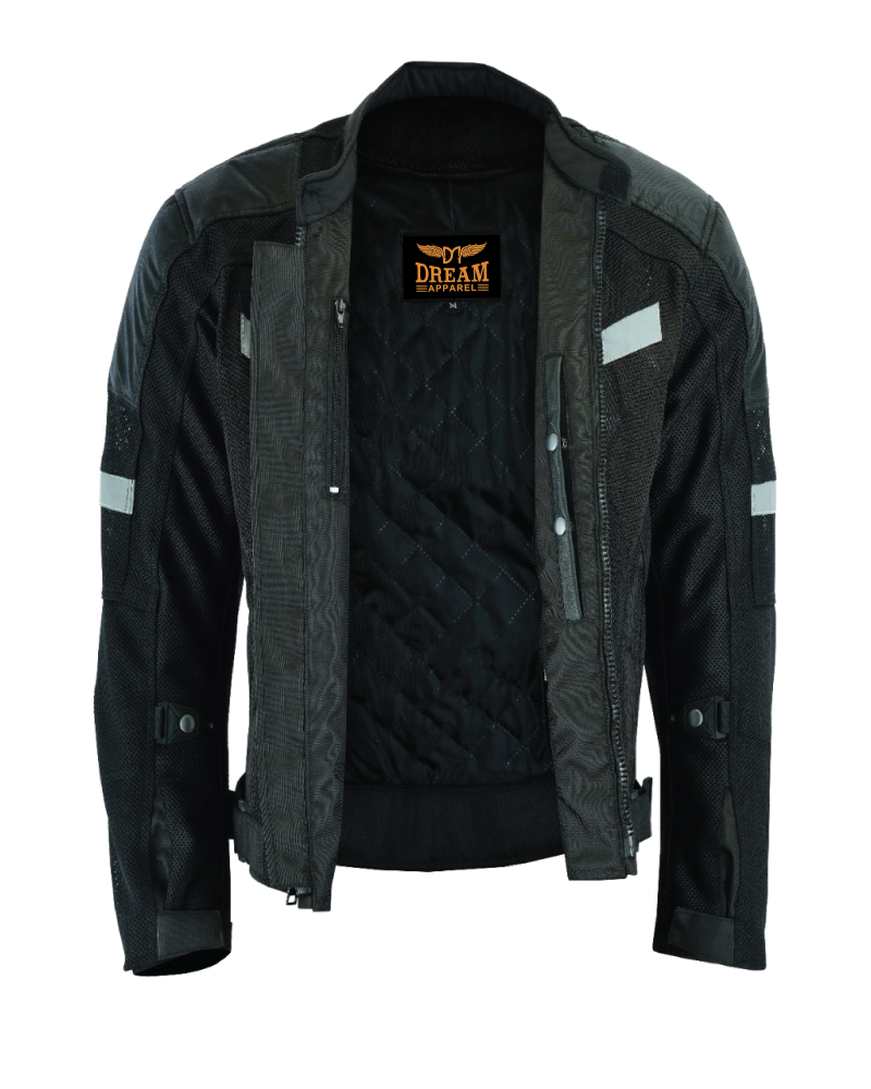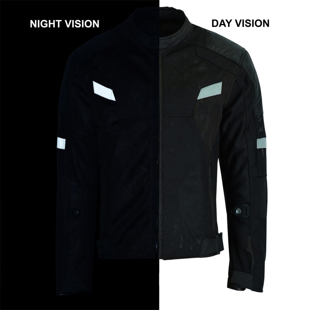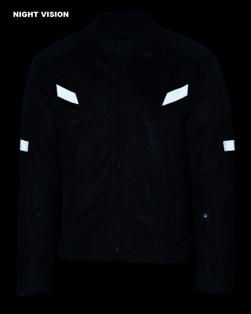 Mens Motorcycle Perforated Textile Reflective Mesh Riding 3 Season Jacket with amors - M is backordered and will ship as soon as it is back in stock.