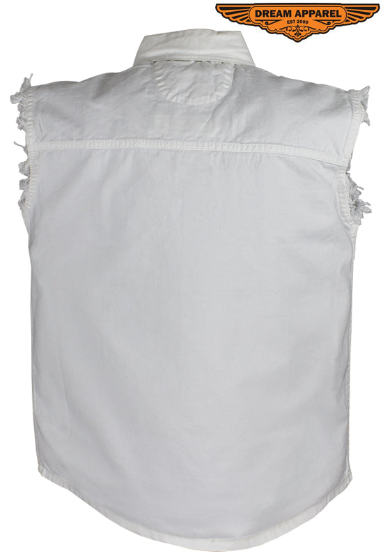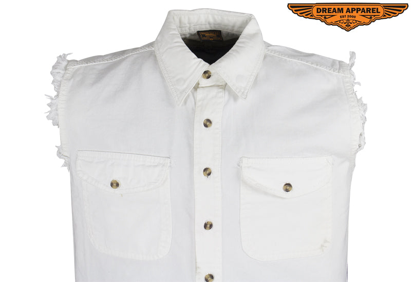 Mens Off White Sleeveles Motorcycle Shirt
