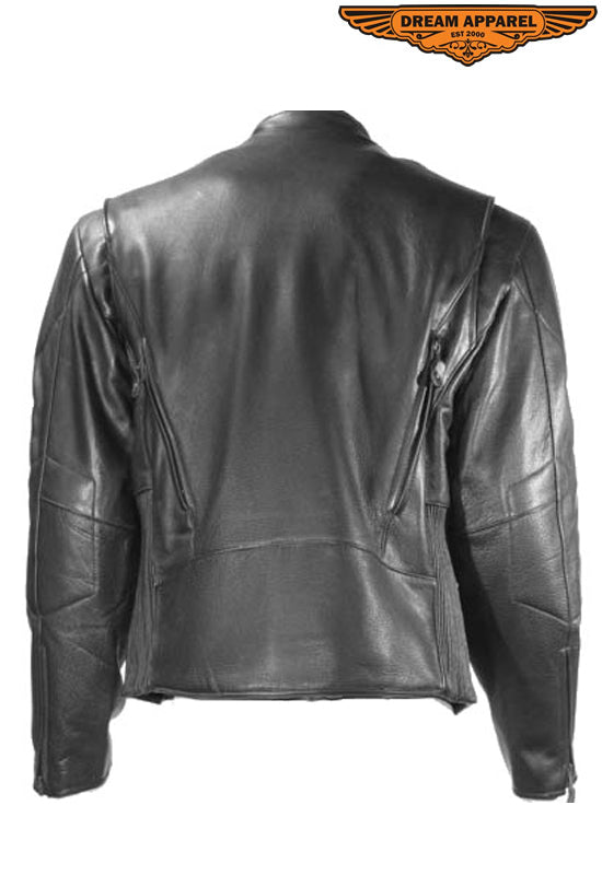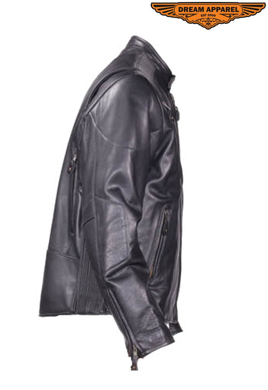 Great men's jacket made from top grade cowhide leather and features a Z/o lining that runs through the sleeves. This great jacket also includes air-vents, multiple pockets, 1 piece of panel on the back to add patches and/or embroidery, adjustable straps on the side and zippered cuffs for a great fit!