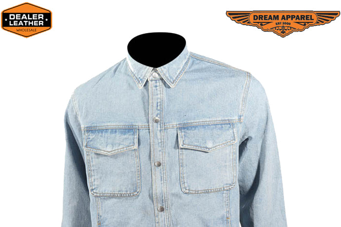 Some trends are just meant to last forever, such as a denim shirt. Dream Apparel's beautiful variation is no different, featuring a light denim exterior enclosed with several snaps. The jacket has a total of four pockets, two can be found at the chest area while the other two are at your sides making it easy to slide your hands right into. With an excellent light weight along with the perfect fit, the comfortable interior is sure to keep you snug. A denim shirt isn't uncommon and we can all agree everyone needs at least one so let yours be this one. Go with the best and don't worry about the rest.