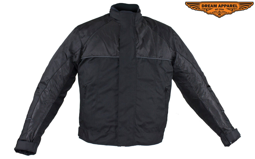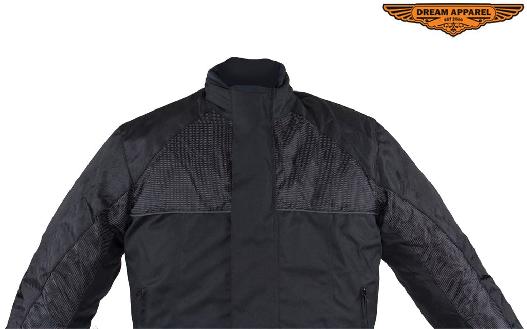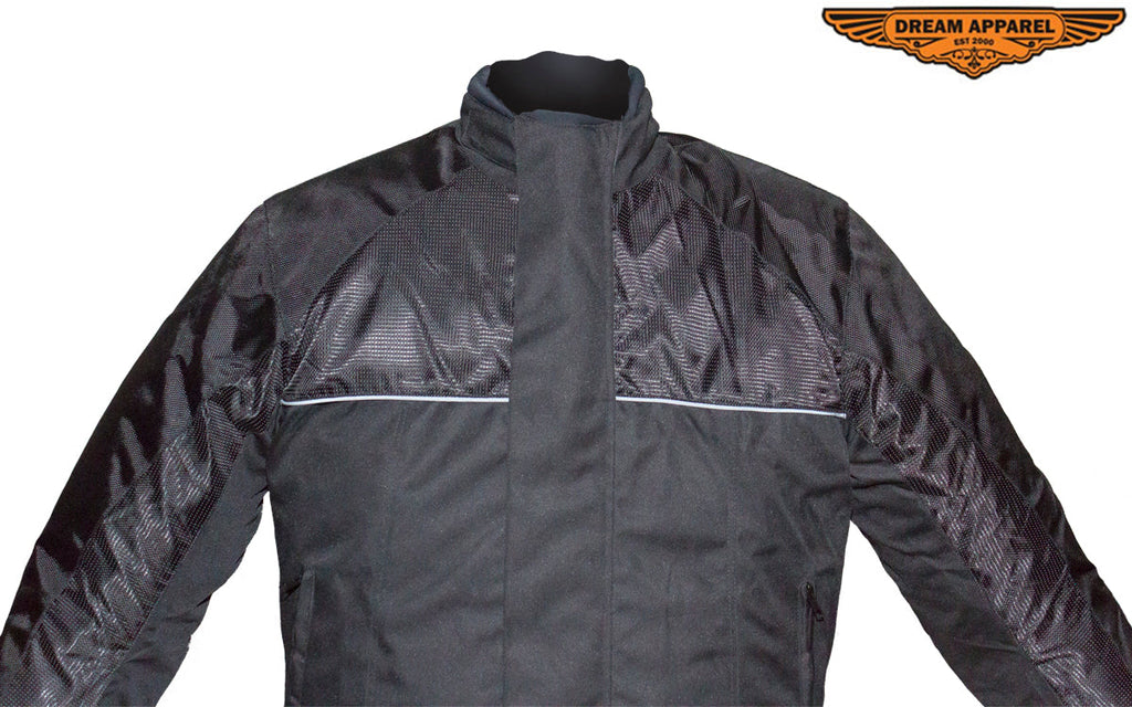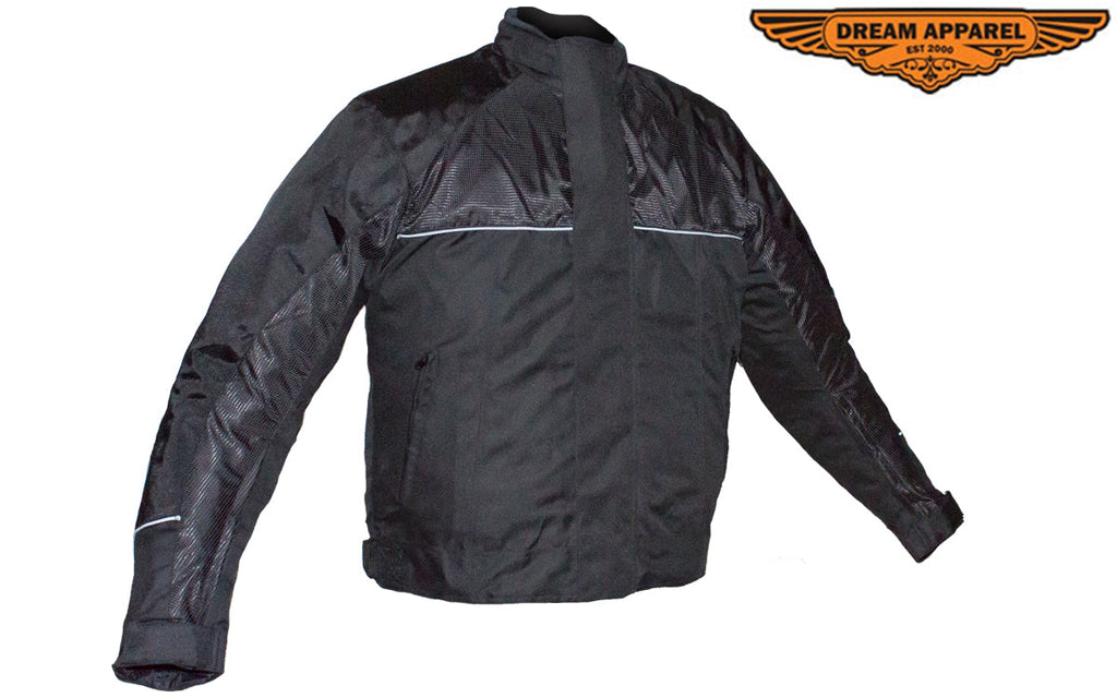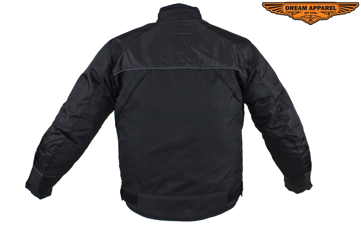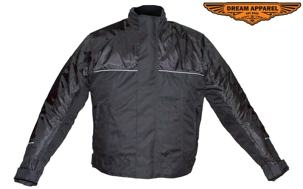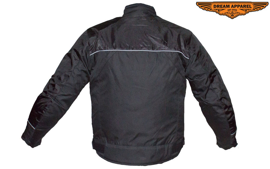 Experience the thrills and power of throttle with our mens textile jacket with reflective piping on front, back, and sleeves of the jacket. The padding is removable and can be removed from shoulder, eblows, and back. However, we do not recommend to remove the padding while riding.