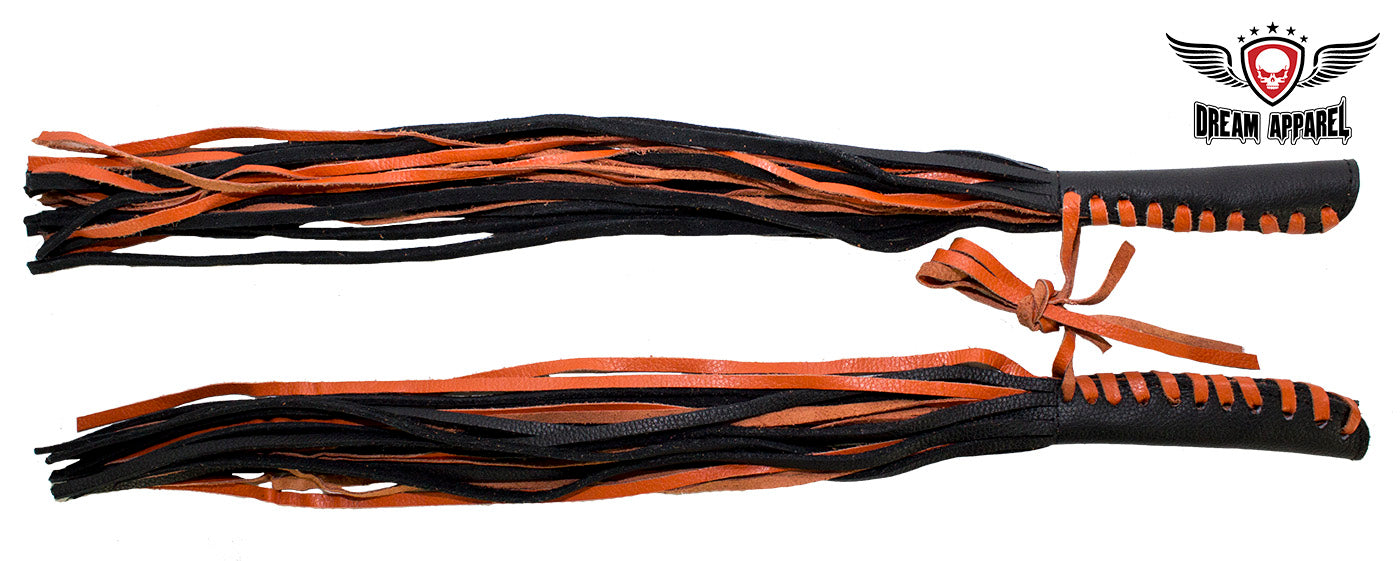 Here at Dream Apparel, we aim to please and with that being said, we'd like to introduce to you a stunning accessory to make your bike standout among the rest. To start off, the blend of the orange and black fringes is a perfect mix. The adjustable leather laces make sure the fit is ideal and guarantee's a fit to almost any bike. We used a beautiful naked cowhide leather exterior while giving it a soft interior. This cover is an amazing option for just about any biker.