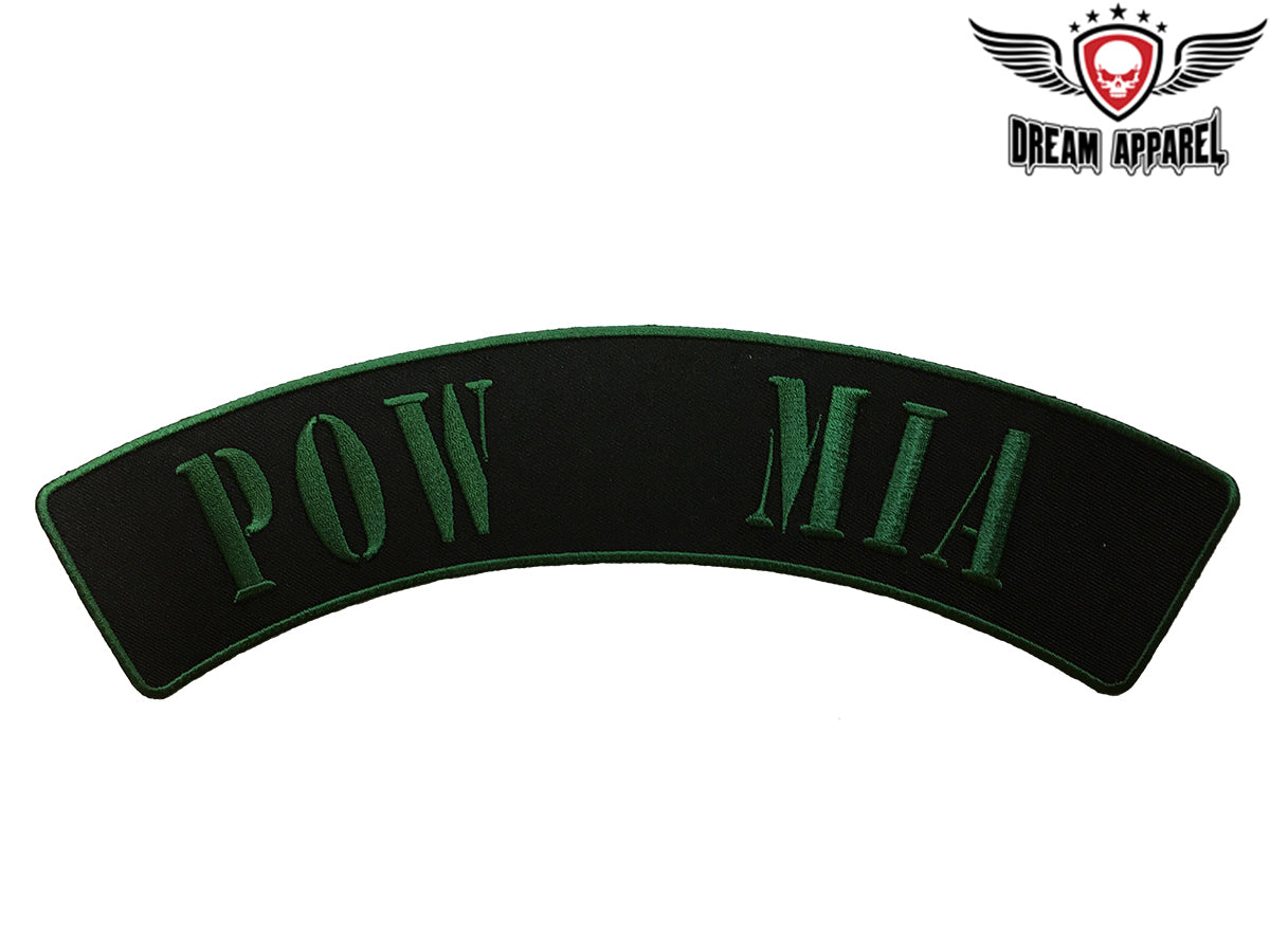Never let your brothers in arms be forgotten when you display this top rocker by Dream Apparel. Measuring 2" X 9.75" with POW/MIA in green block lettering on a black background with a green border, this patch honors the memory of all those yet to come home.