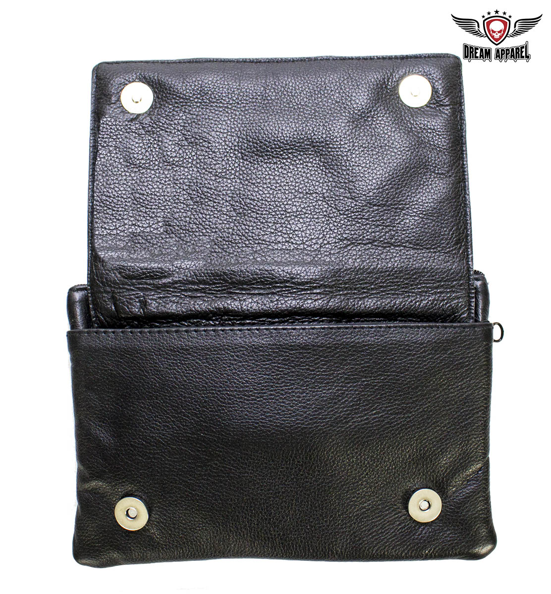 - Large dual chrome magnetic flap pocket on front