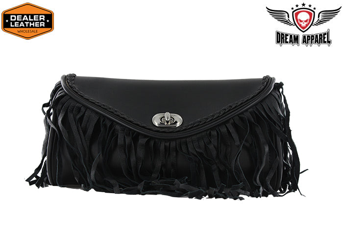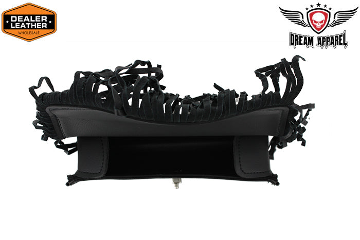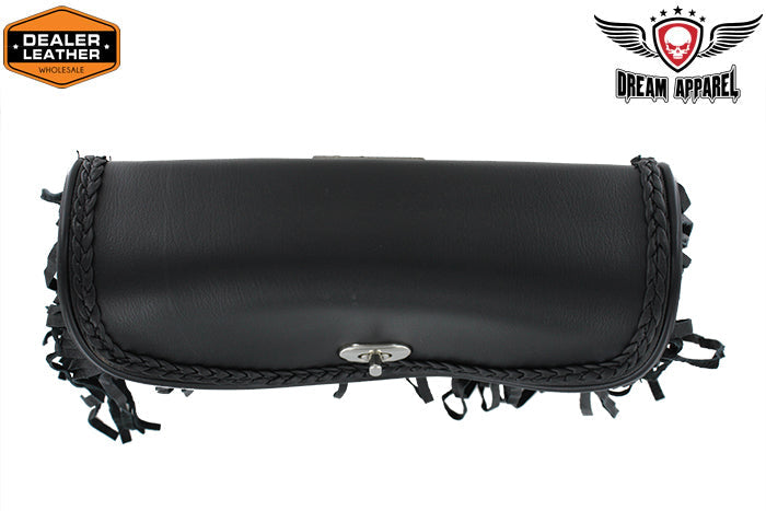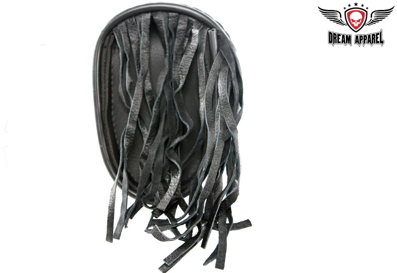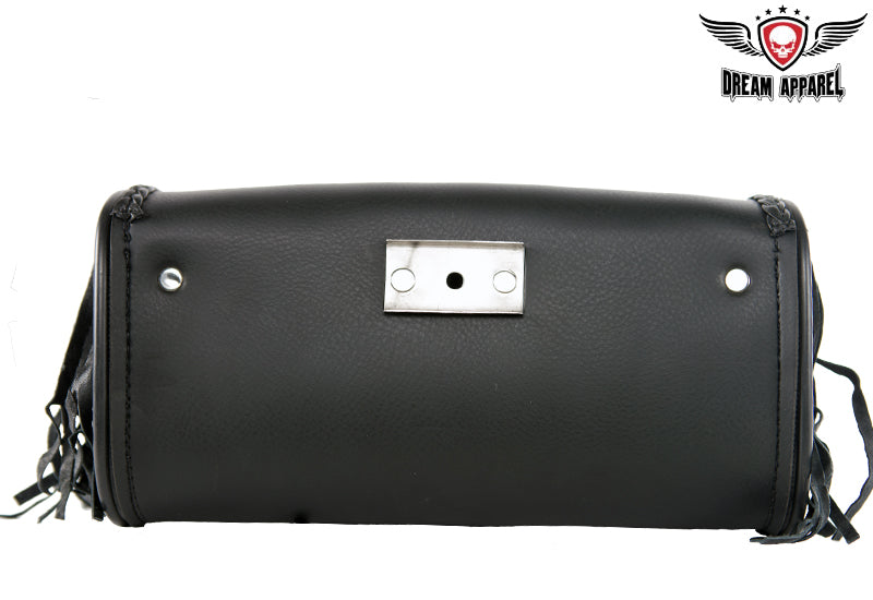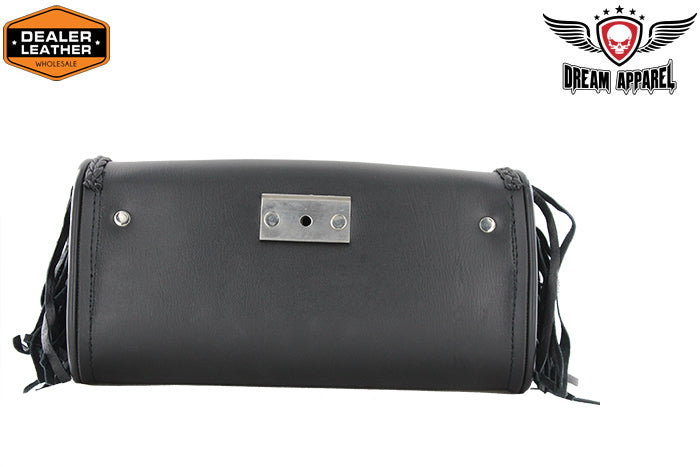 Looking for a motorcycle whindshield bag? We have them and this motorcycle windshield bag comes as PVC or Leather. The metal plate on the back of the bag is there to attach the bag to motorcycle. windshield. The bag is 100% resistant and features a secure knob that turns to close or open the flap.