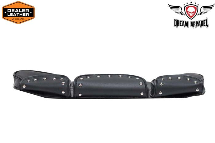 Depending on your motorcycle you can either have one, two, or three storage compartments on your bike. Our 3 storage compartments motorcycle windshield bag features studs on the 3 bags.