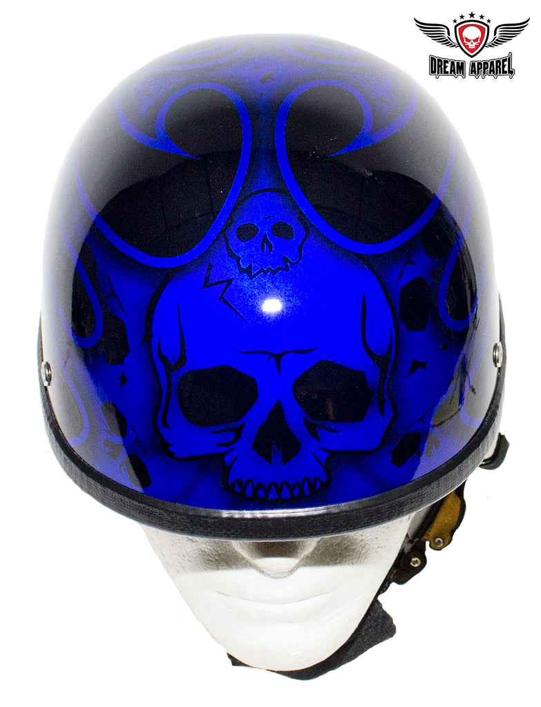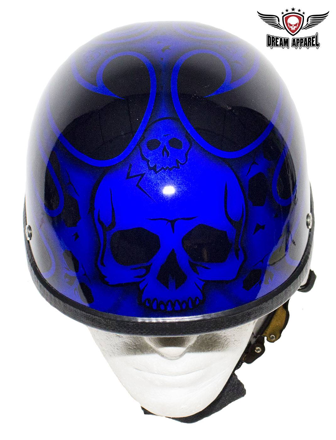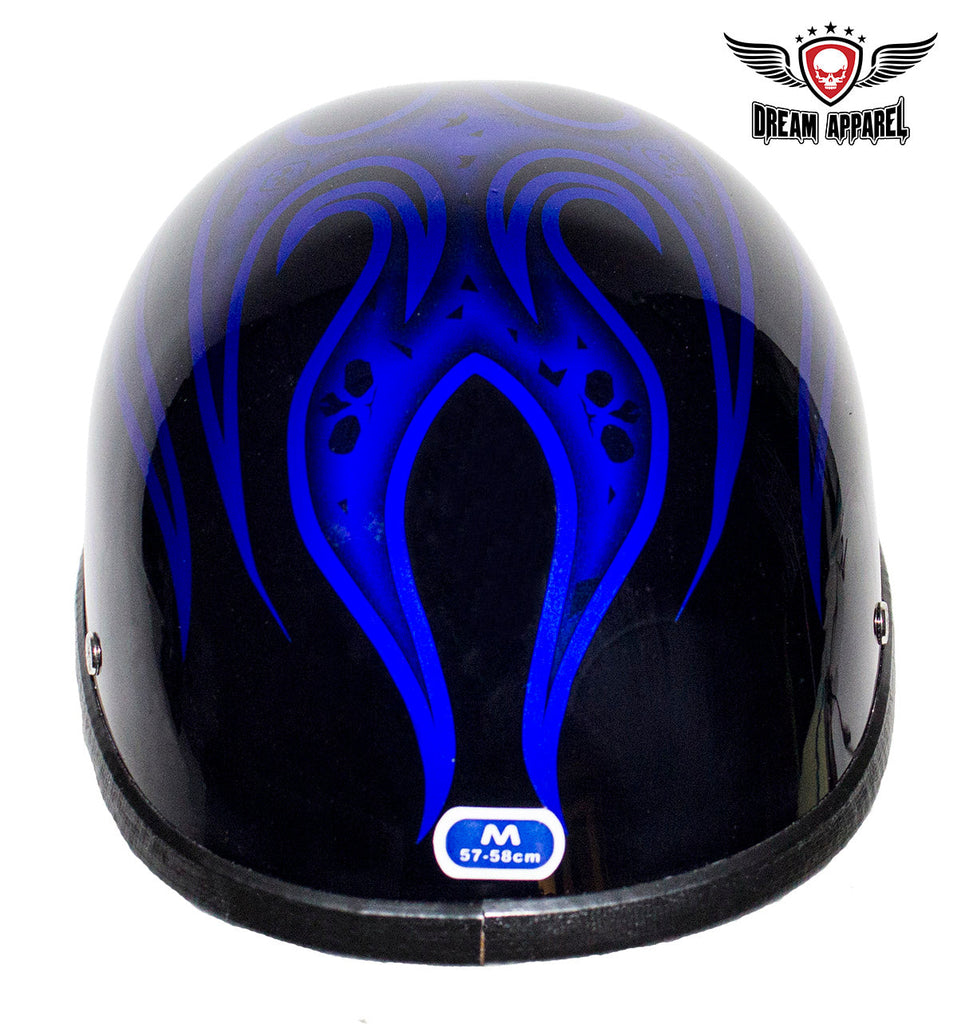 Shiny Blue Novelty Helmet With Burning Skull - M is backordered and will ship as soon as it is back in stock.