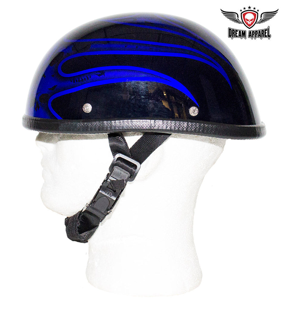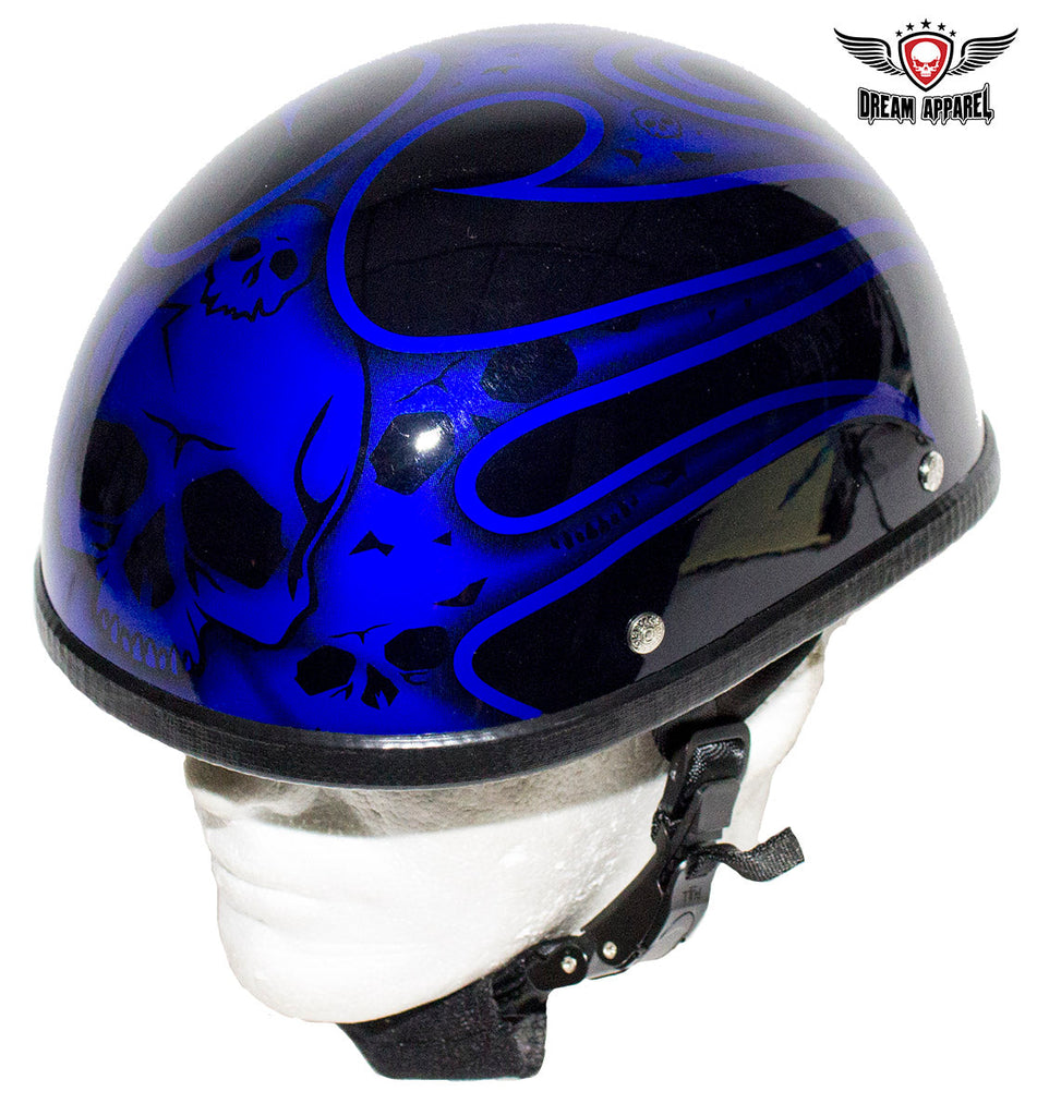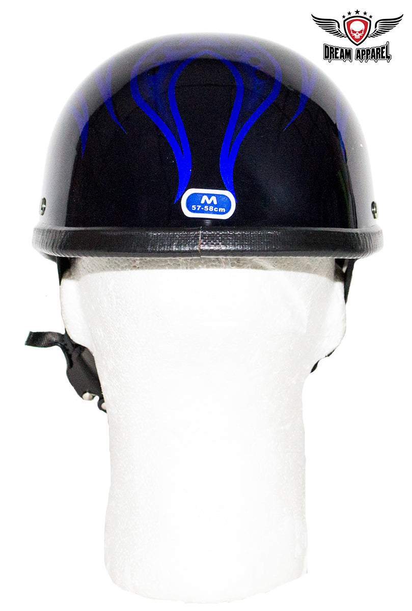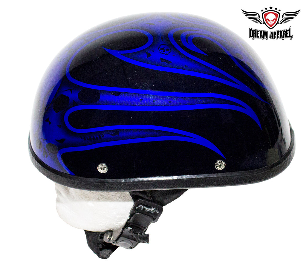 Shiny Blue Novelty Helmet With Burning Skull - M is backordered and will ship as soon as it is back in stock.