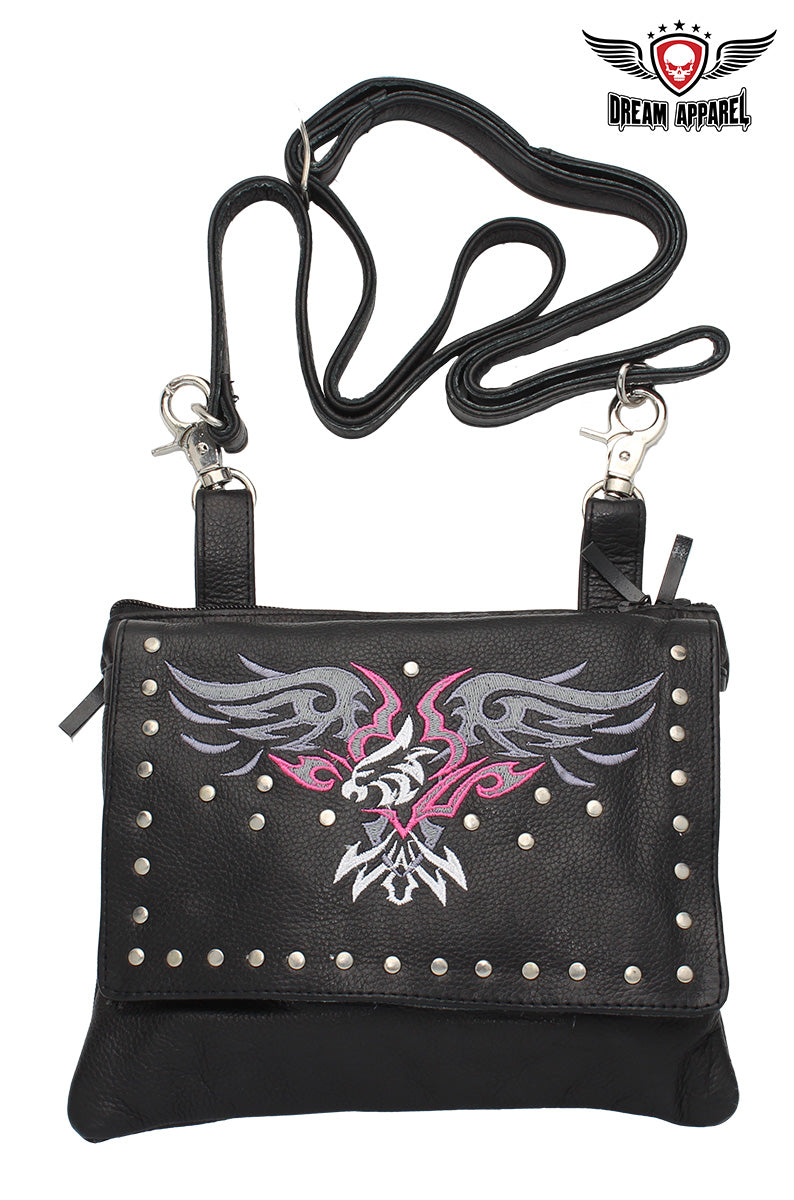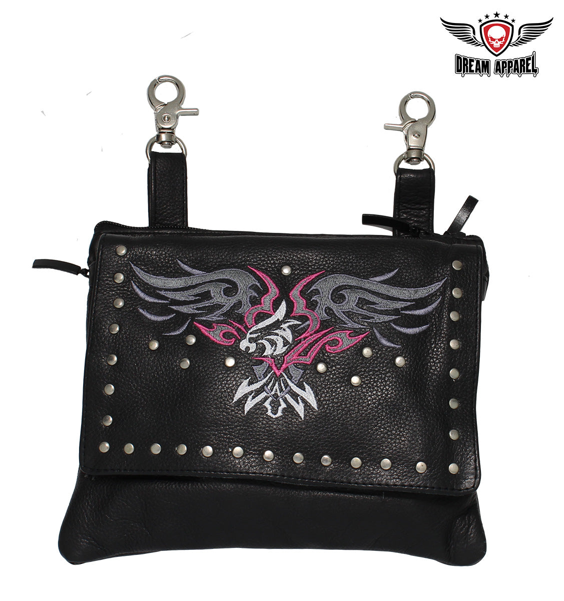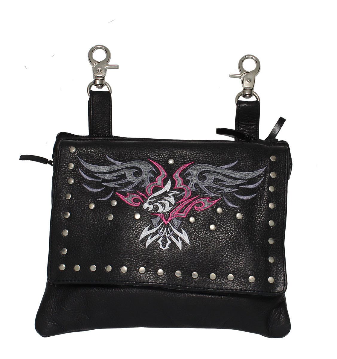 Studded Naked Cowhide Leather Gun Holster Belt Bag with Pink & Silver Eagle