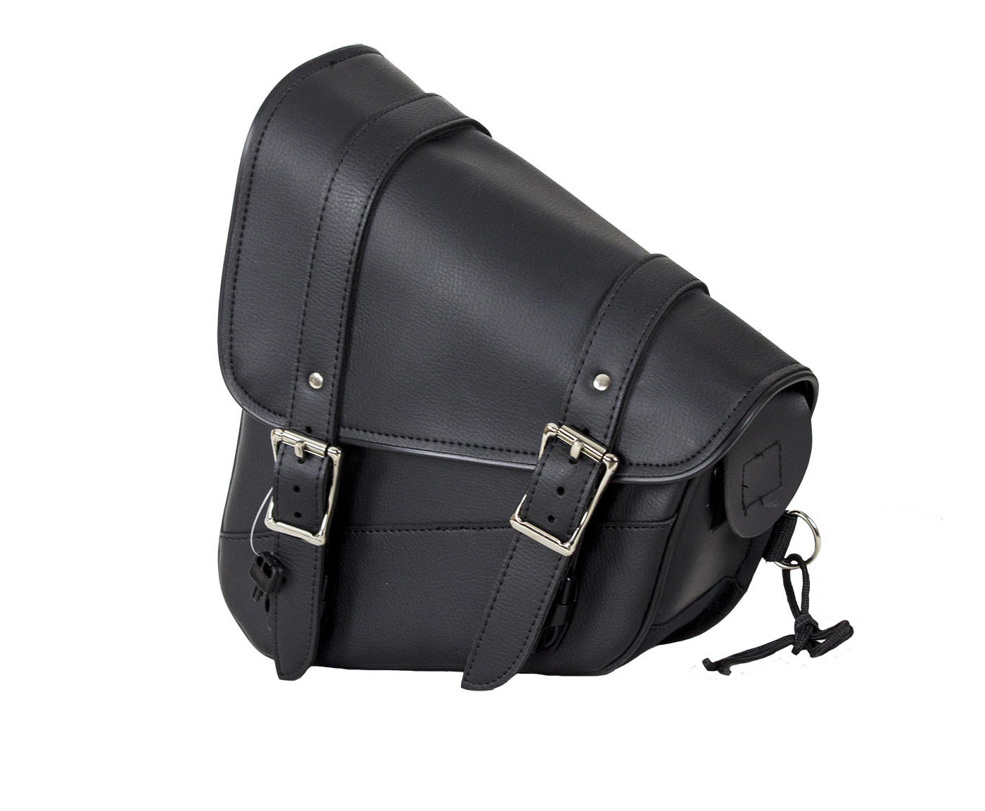 This PVC solo swing arm bag is designed for universal fitting which allows it to fit most Softails, Sportsters, and Choppers. The swing arm bag features UV protection and includes a heat resistant material at the bottom of the swing arm bag.