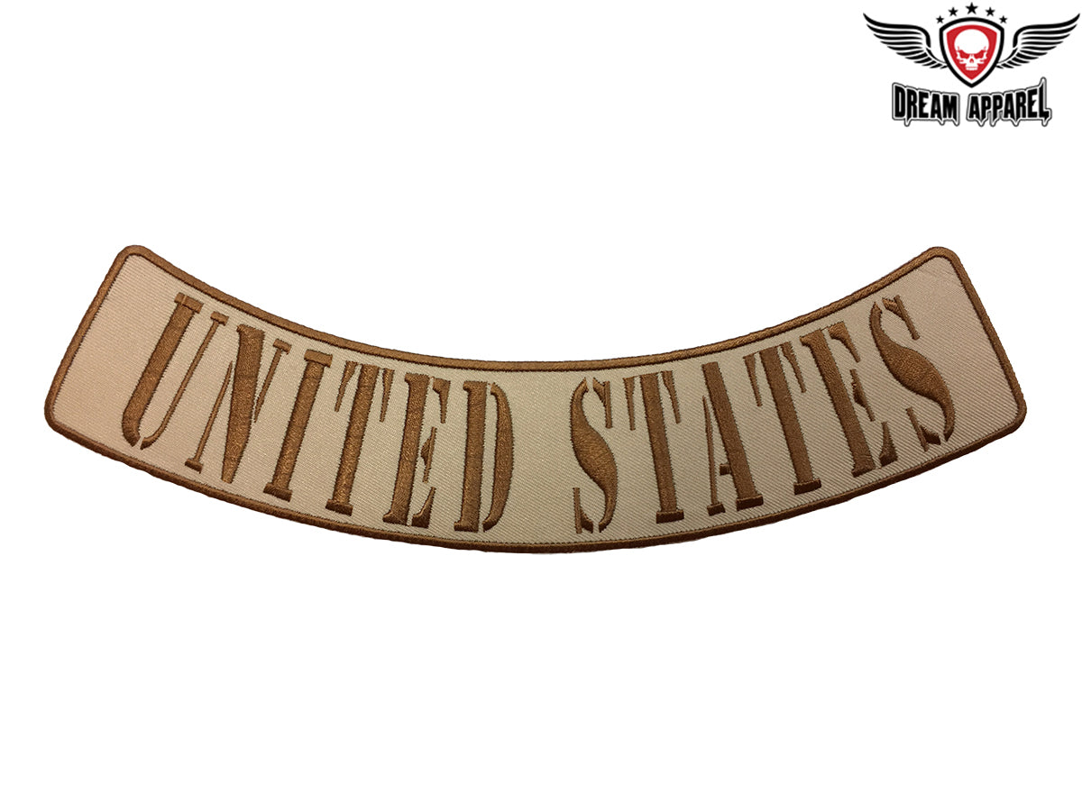 This 2" X 9.75" bottom rocker with "UNITED STATES" in brown letters against a beige background and a brown border lets everyone know of your courageous military service in the Middle East. Desert camo bottom rockers are very popular among veterans and sell out quickly so get your order in today.
