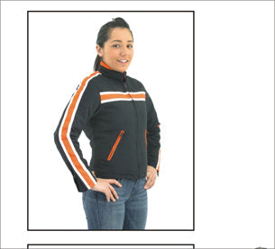 Awesome ladies jacket sporting white and orange stripes and also has a Z/O lining.
