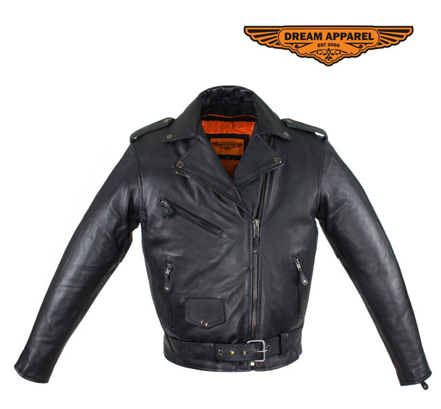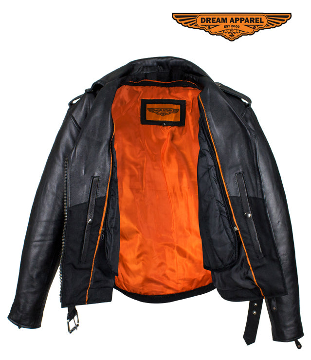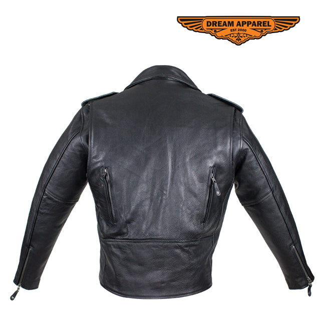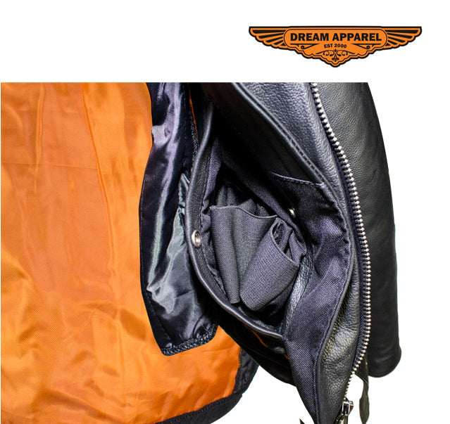 Ladies can now ride around proud in our new and imrproved top grade, naked cowhide leather motorcycle jacket with plenty of zippers and pockets to stash anything and everything you'll need for a sucessful trip on the road. A snap-down collar and zippered cuffs will keep the wind away on those long trips while the full zip-out lining and half-belt give you even greater comfort. Let everyone know the name of your club and your accomplishments on the clean, back panel. You live to ride, so make sure you're wearing the right jacket.