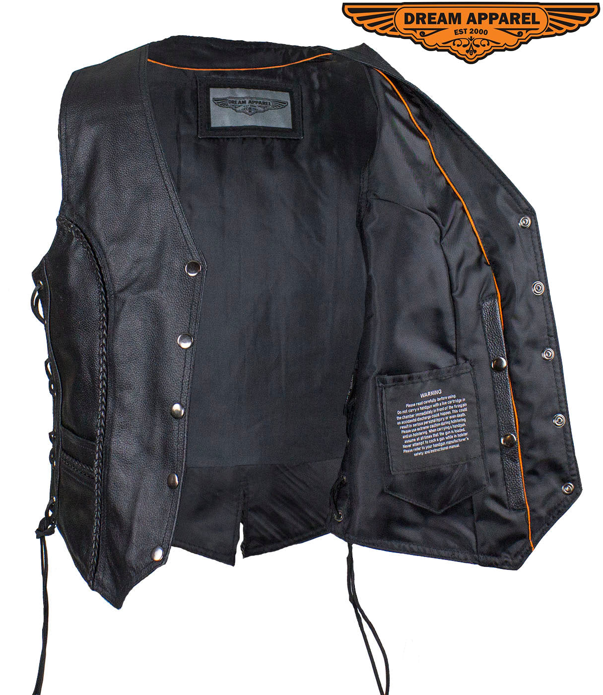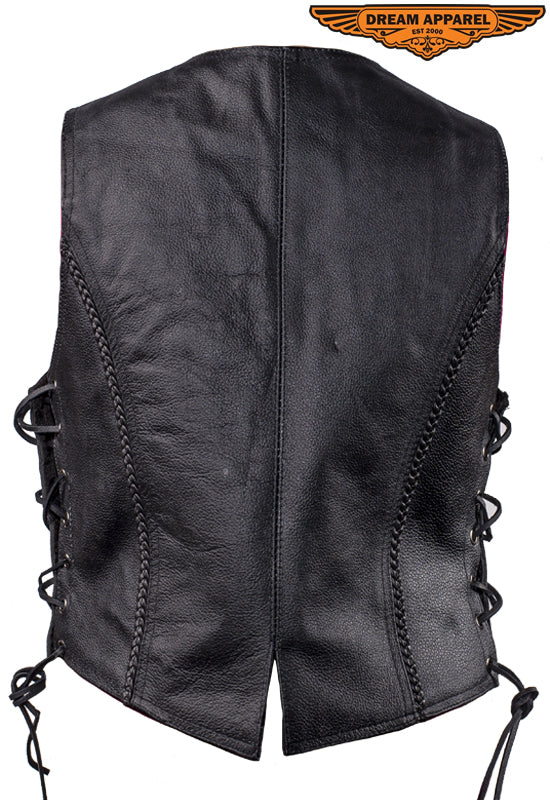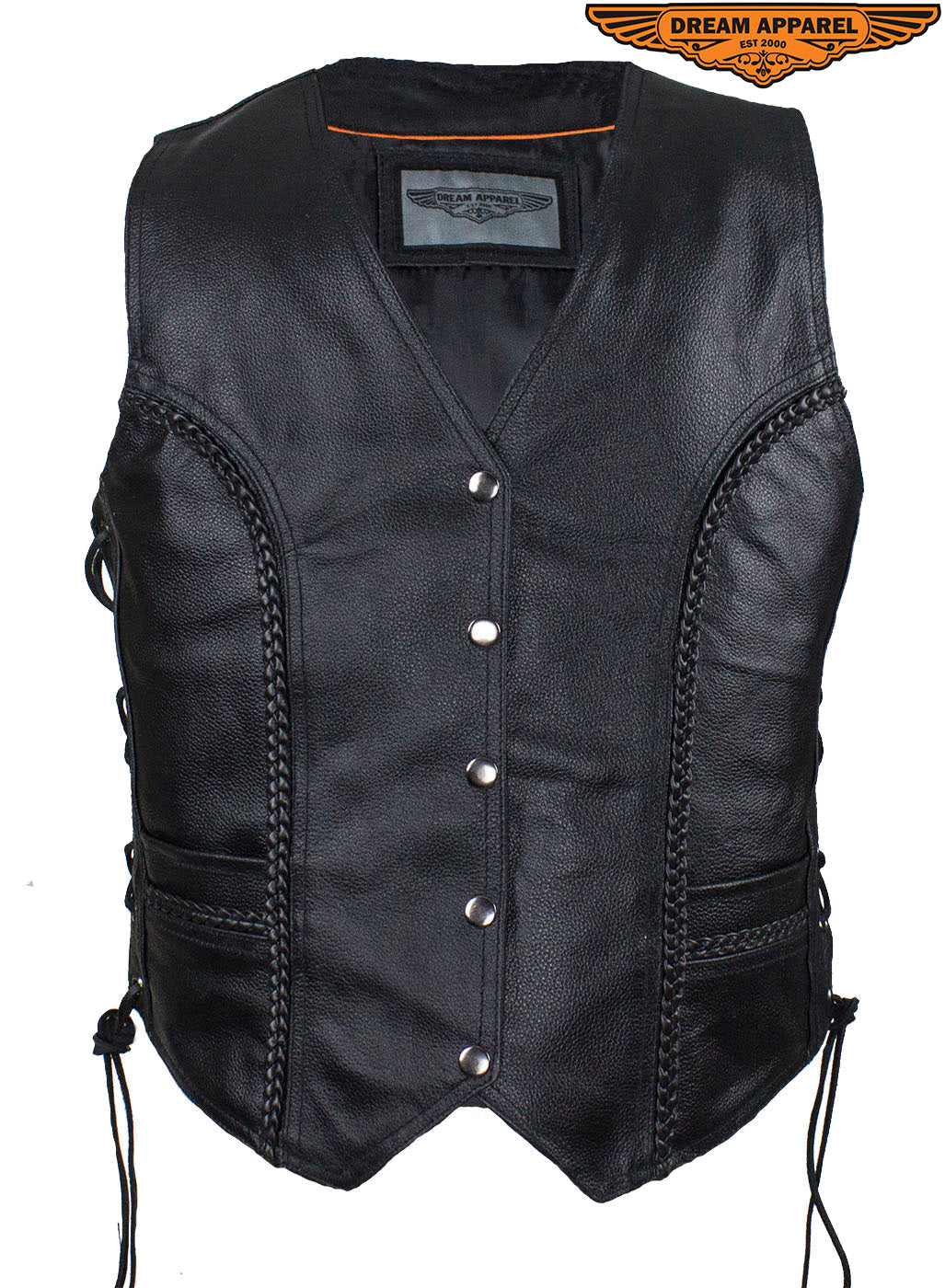 It won't matter if you're on the road or about town, you'll look good and feel great in our top-grade, genuine Soft Touch leather vest. This Classic style vest features ornamental braiding, multiple pockets inside and out, a smooth nylon lining, four button snaps, side laces, and additional length to cover the midsection making this vest comfortable and a great value.