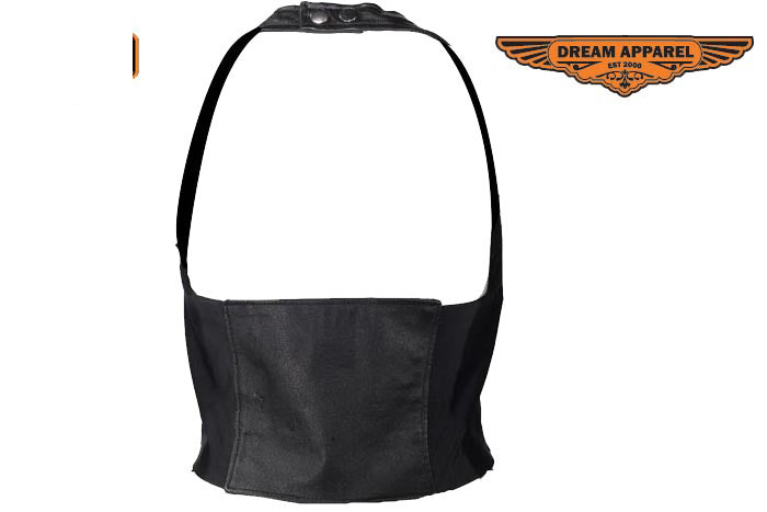 This womens halter top with braid is made from top genuine leather. The halter top is braided and features zipper front and two zippered pockets.