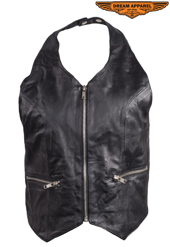 Made from genuine leather, this great product in black includes a front zipper, side zipper pockets, and a stretchable cloth material on the side for a better fitting.